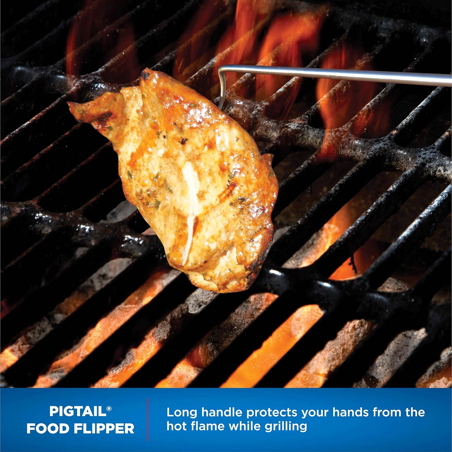 - PigTail for Grilling: Pick pickles from the jar, hot corn on the cob from boiling water or easily flip bacon in the fry pan and much more. Eliminate the need for tongs, forks and spatulas… flip steaks, chops, breasts and vegetables on the grill