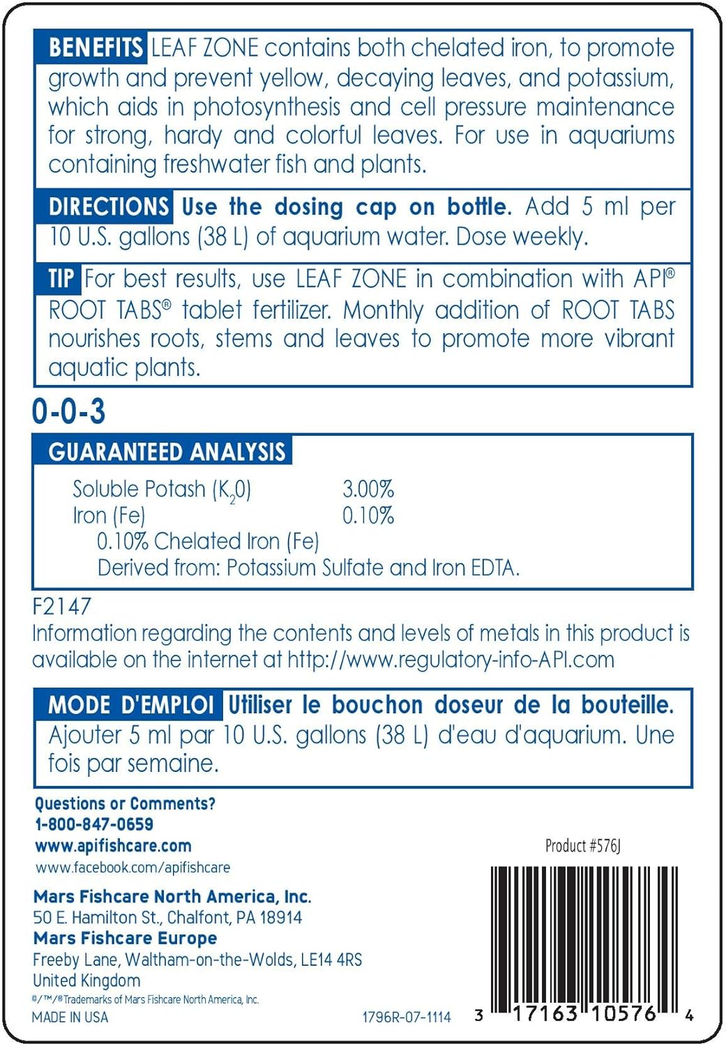- Contains one (1) API LEAF ZONE Freshwater Aquarium Plant Fertilizer 16-Ounce Bottle