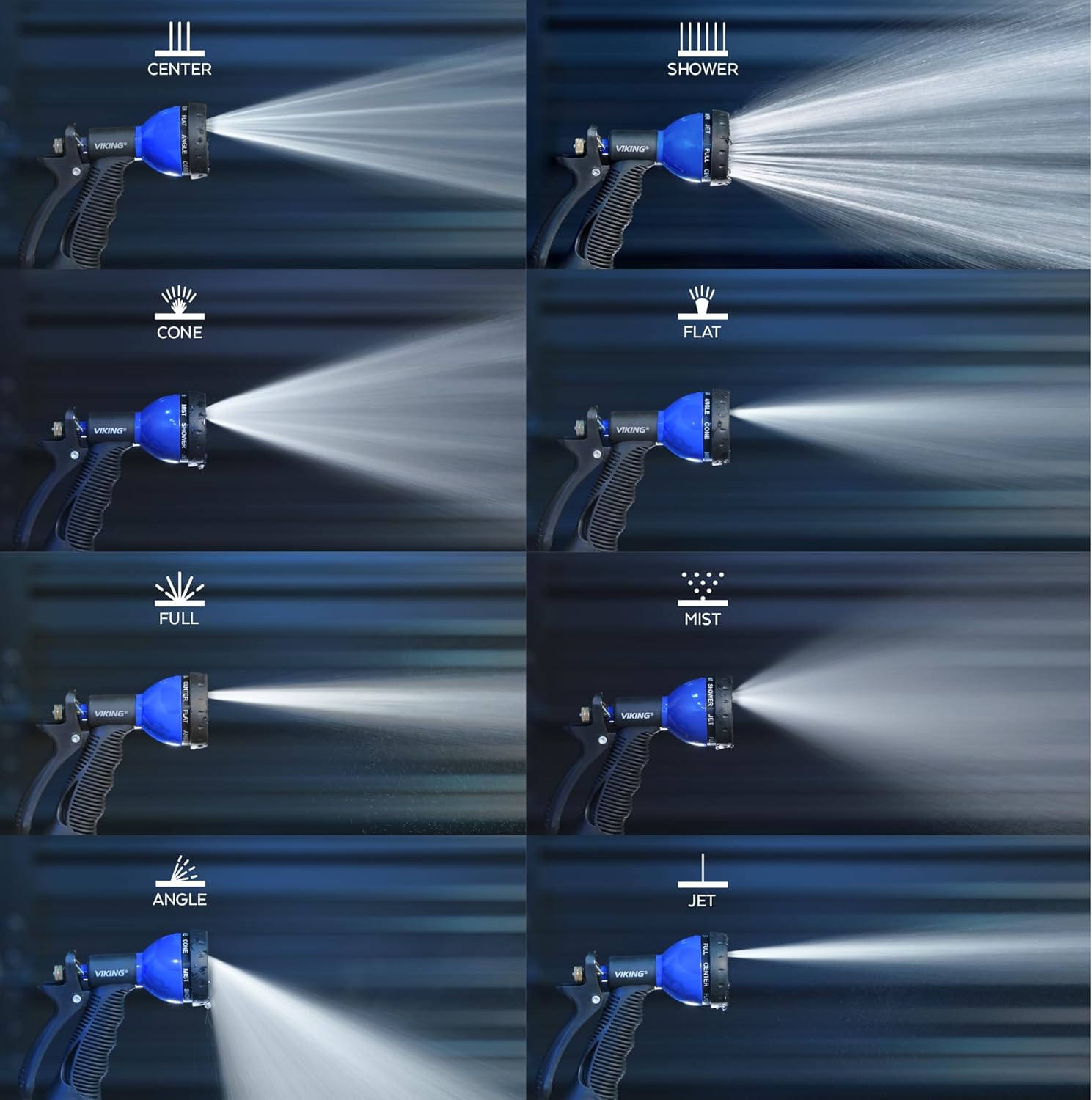 VIKING Hose Nozzle, Garden Hose Nozzle with 8 Spray Patterns, Adjustable and Heavy Duty for Washing Car, Watering Plants, Washing Pets, and Home Use