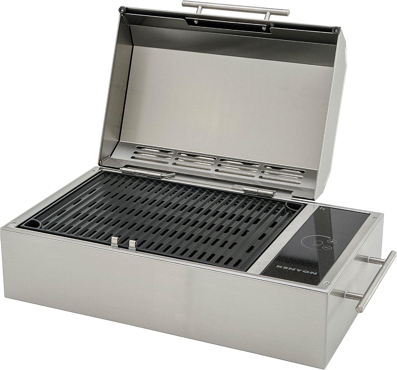 Kenyon Frontier Portable Electric Grill, Waterproof Digital Touch Control, UL-Approved For Indoor And Outdoor Use, Stainless Steel, Rust-Proof Grill, Quick Heat Up, Dishwasher Safe, 120V