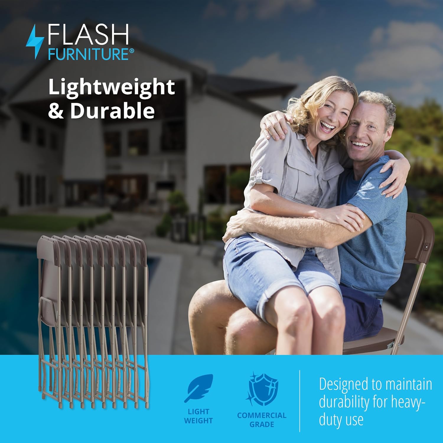 Flash Furniture Hercules Series Plastic Folding Chair Brown - 10 Pack 650LB Weight Capacity Comfortable Event Chair-Lightweight Folding Chair