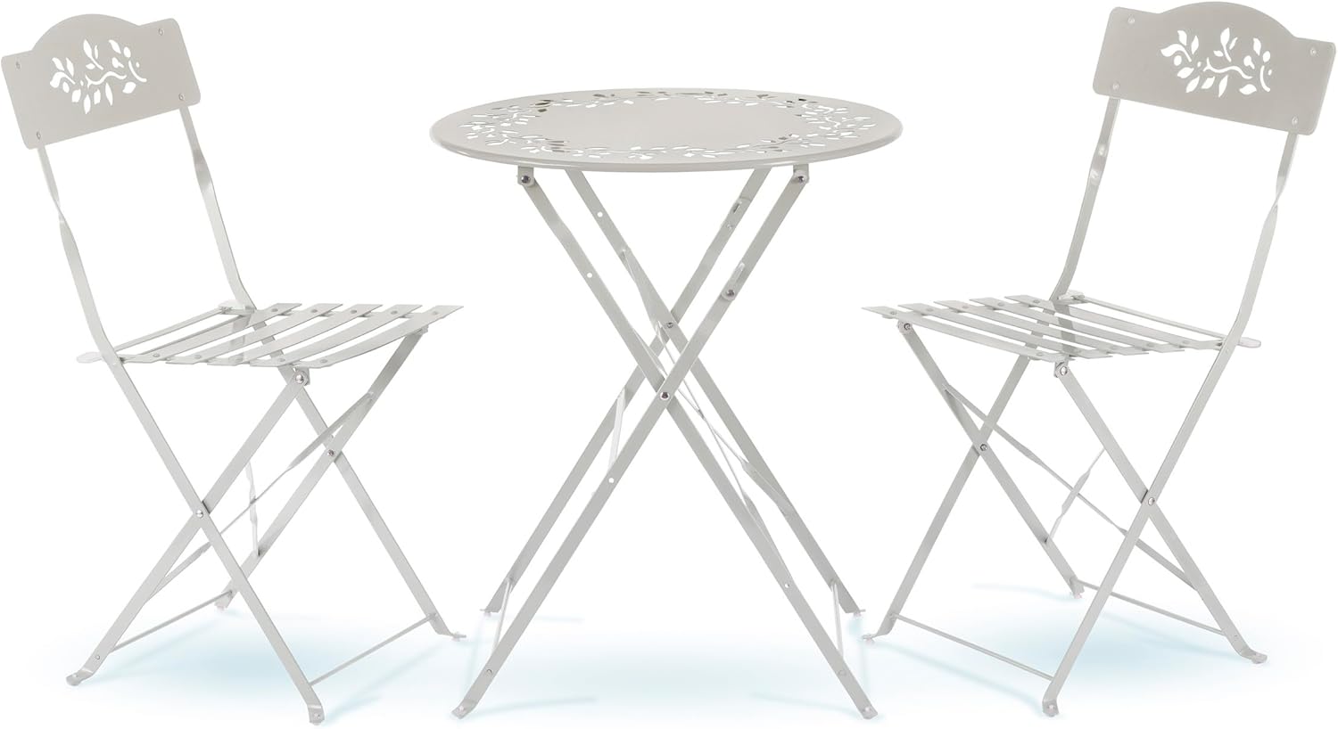 Alpine Corporation Indoor/Outdoor 3-Piece Bistro Set Folding Table and Chairs Patio Seating, White