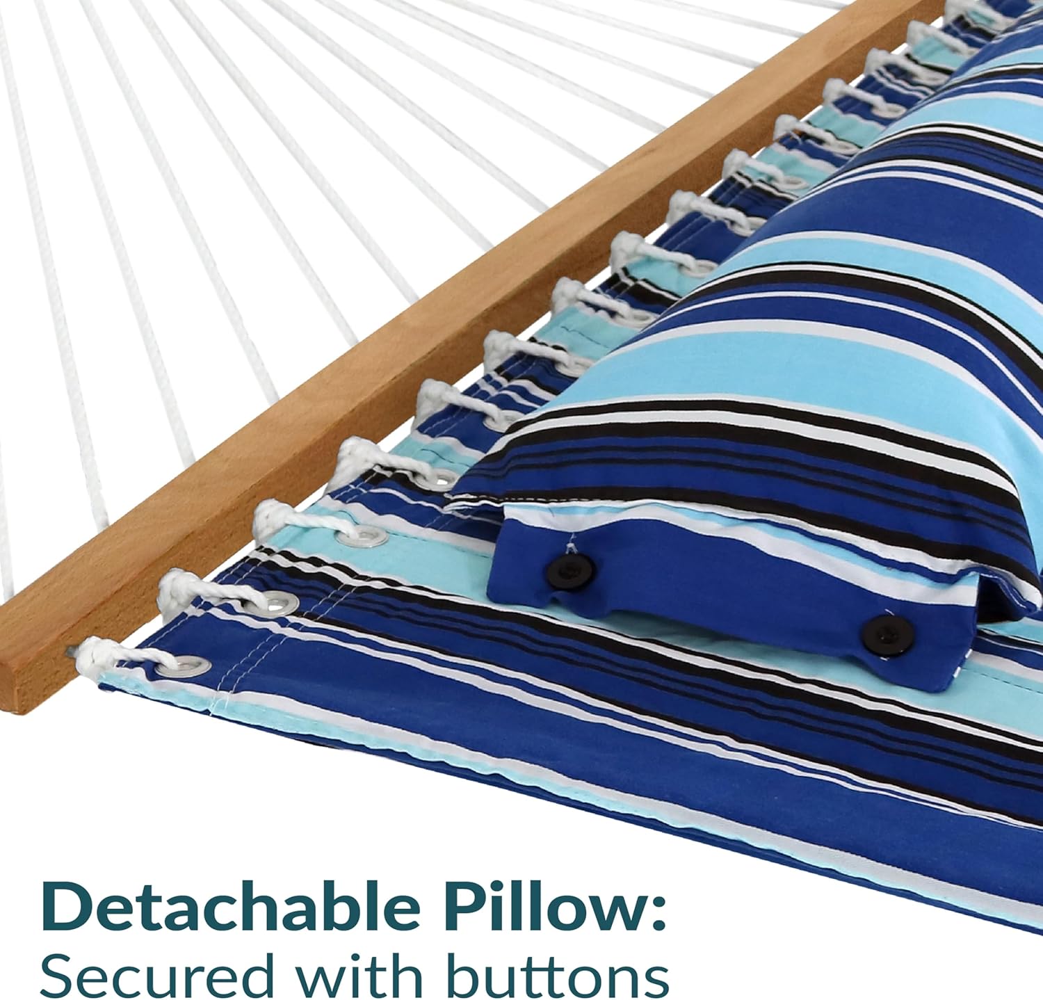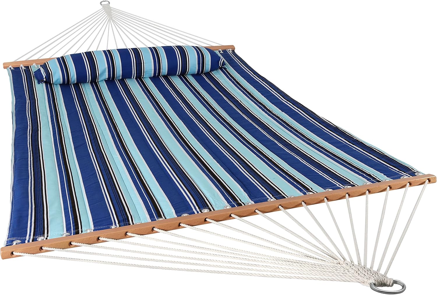 Sunnydaze Quilted Outdoor Hammock with Spreader Bars - Heavy-Duty 450-Pound Capacity Double Hammock for Outside - Catalina Beach