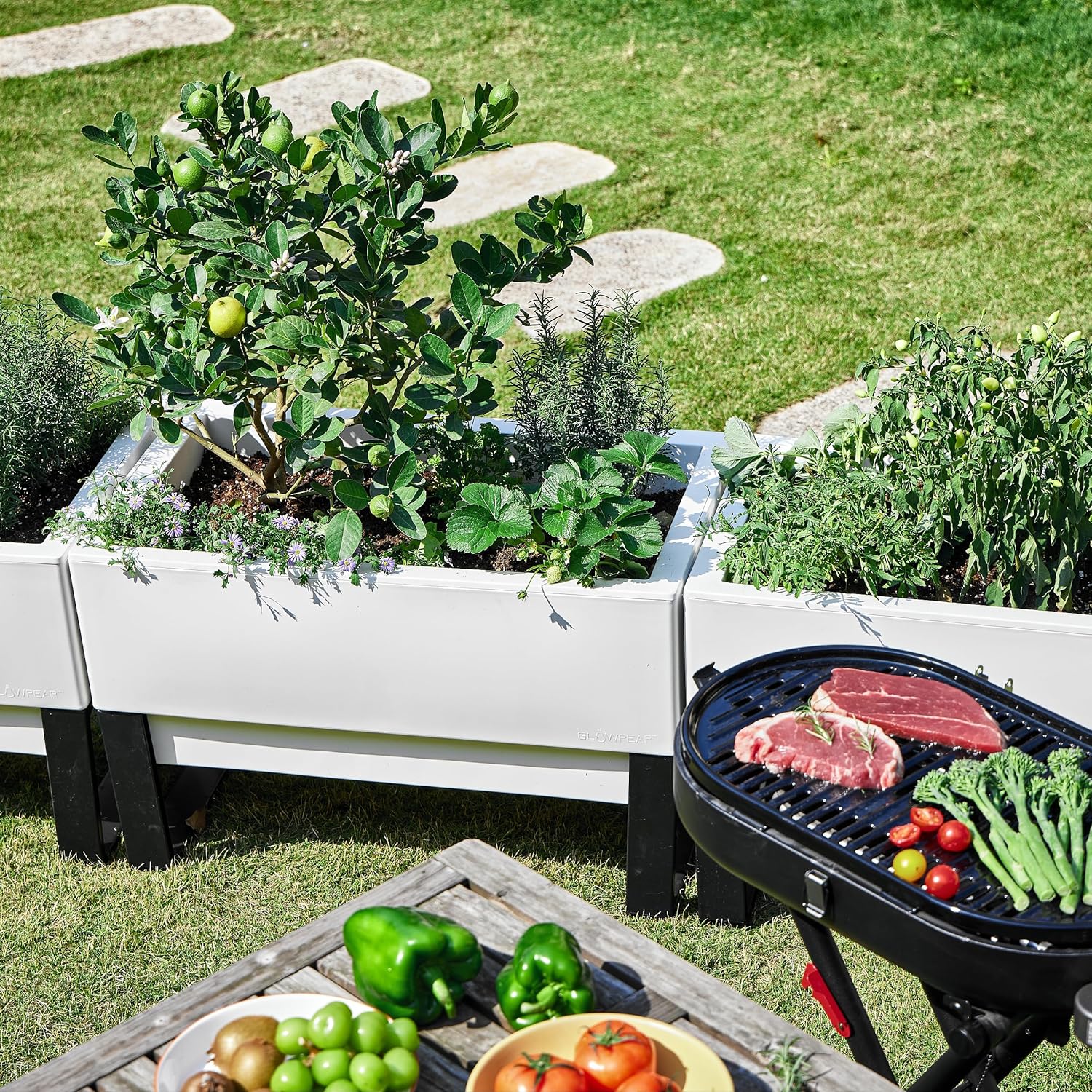 - 【Easily grow the plant&vegetables and herbs you love! 】- No bending required with ideal growing conditions: Pick, prune and water your garden easily due to the raised design with generous 11” soil depth and 16 gal volume to optimize growing; flowers i.e. violas, pansies and daffodils; fruit i.e. tomatoes; vegetables i.e. beans, lettuce and radish; and herbs i.e. basil, thyme and coriander.