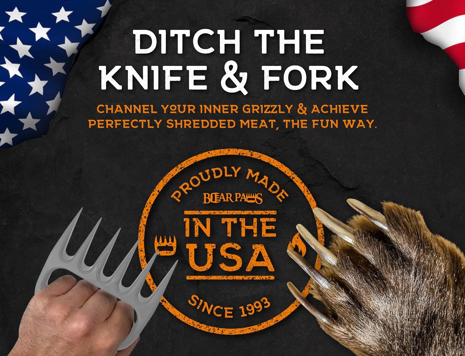 - TIME SAVER - Bear Paws are the answer to perfectly shredded meat without the mess and headache of knives and forks; Easily grasp and shred pork, chicken, beef, and more with the ultra-sharp “claws”