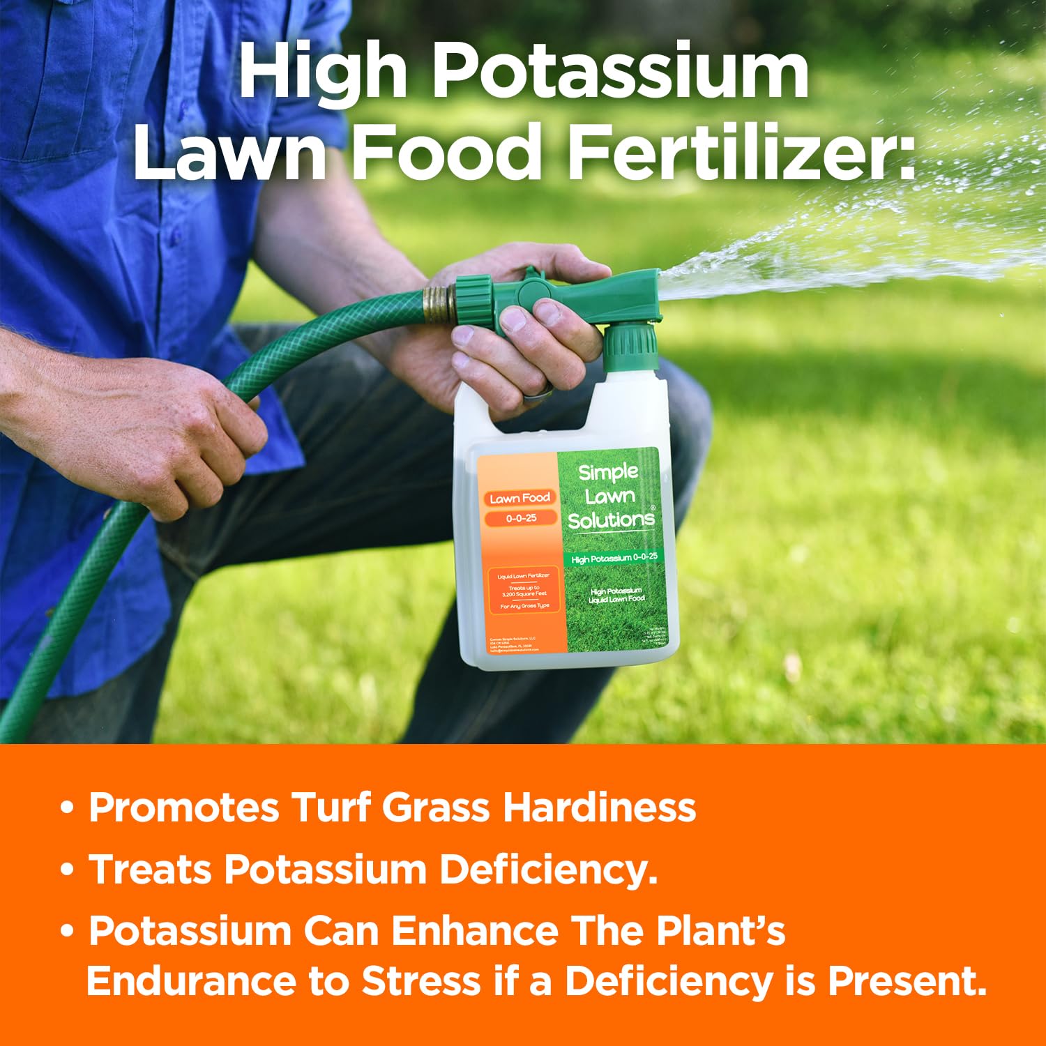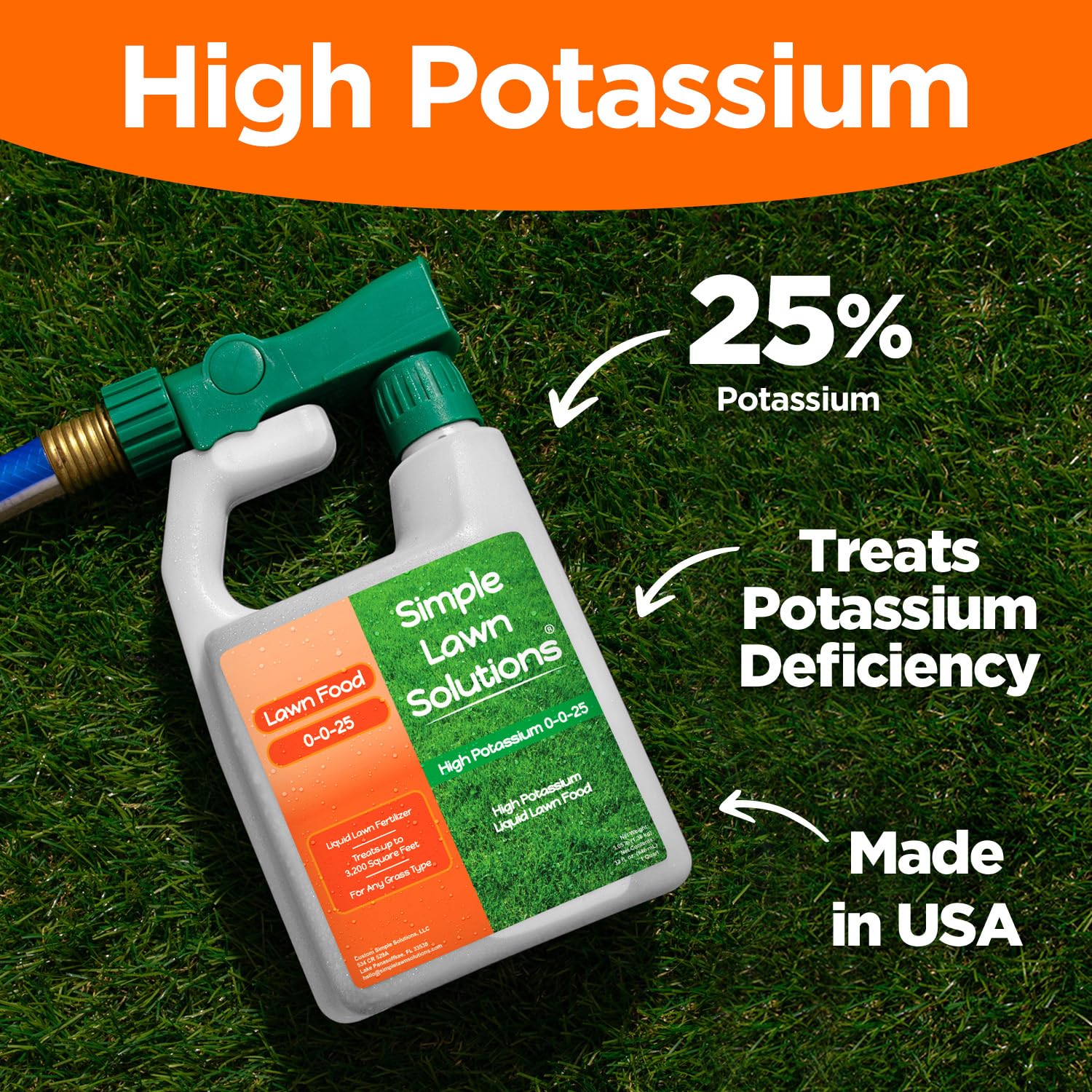 - Easy to Use: Our 0-0-25 Lawn Fertilizer Food Comes With a Ready-To-Use Hose End Sprayer that Applies the Perfect Ratio of Liquid Nutrients for Lawn Applications. Covers up to 3,200 Square Feet, when Using the Attached Sprayer.