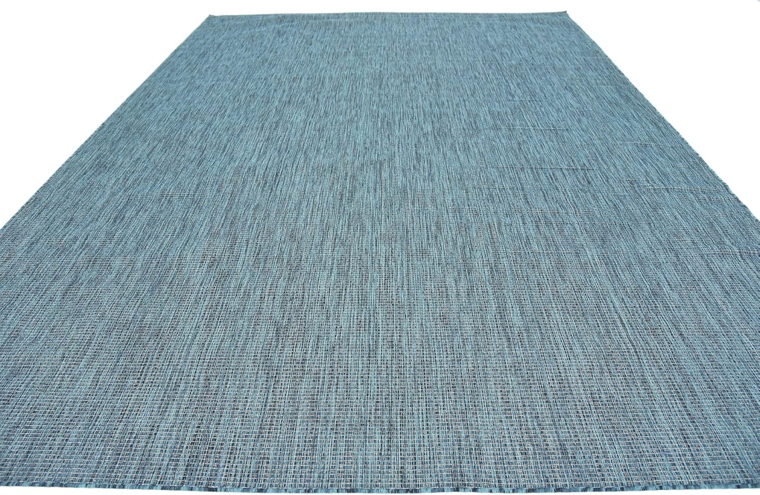 Unique Loom Collection Casual Transitional Solid Heathered Indoor/Outdoor Flatweave Area Rug (9' x 12' Rectangle, Teal/Navy Blue)