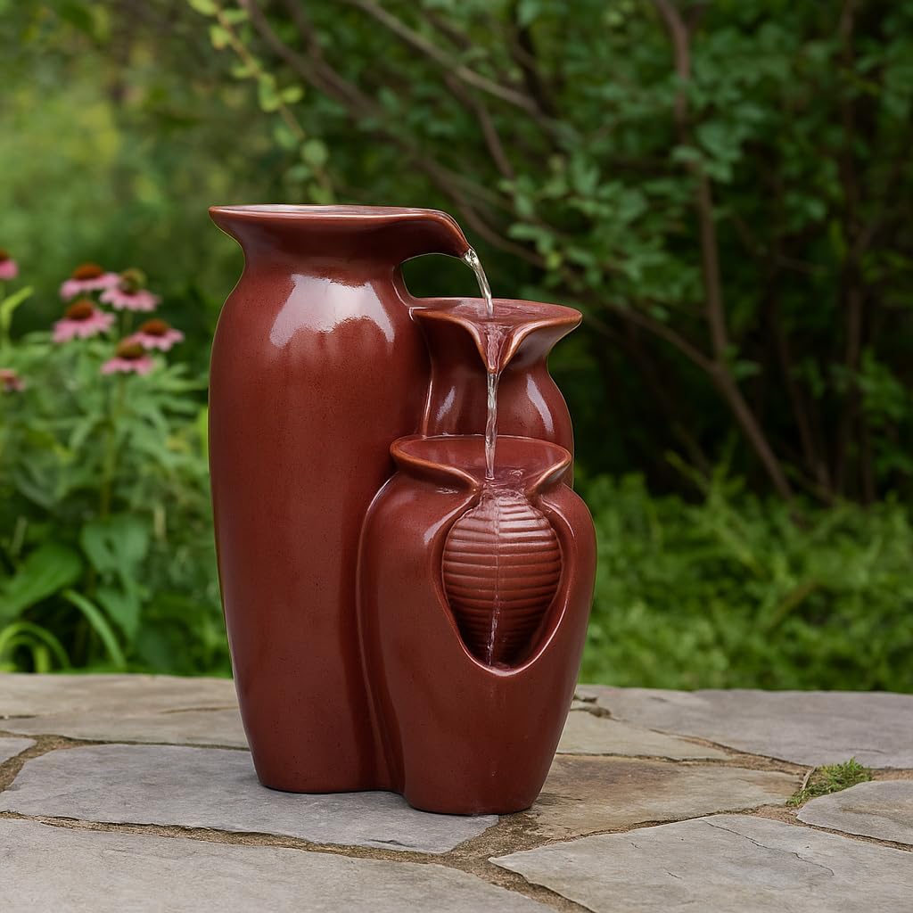 - OUTDOOR DรCOR: Features a 3-tiered design with ceramic-look jars for a stylish and soothing addition to your porch, backyard, or lawn