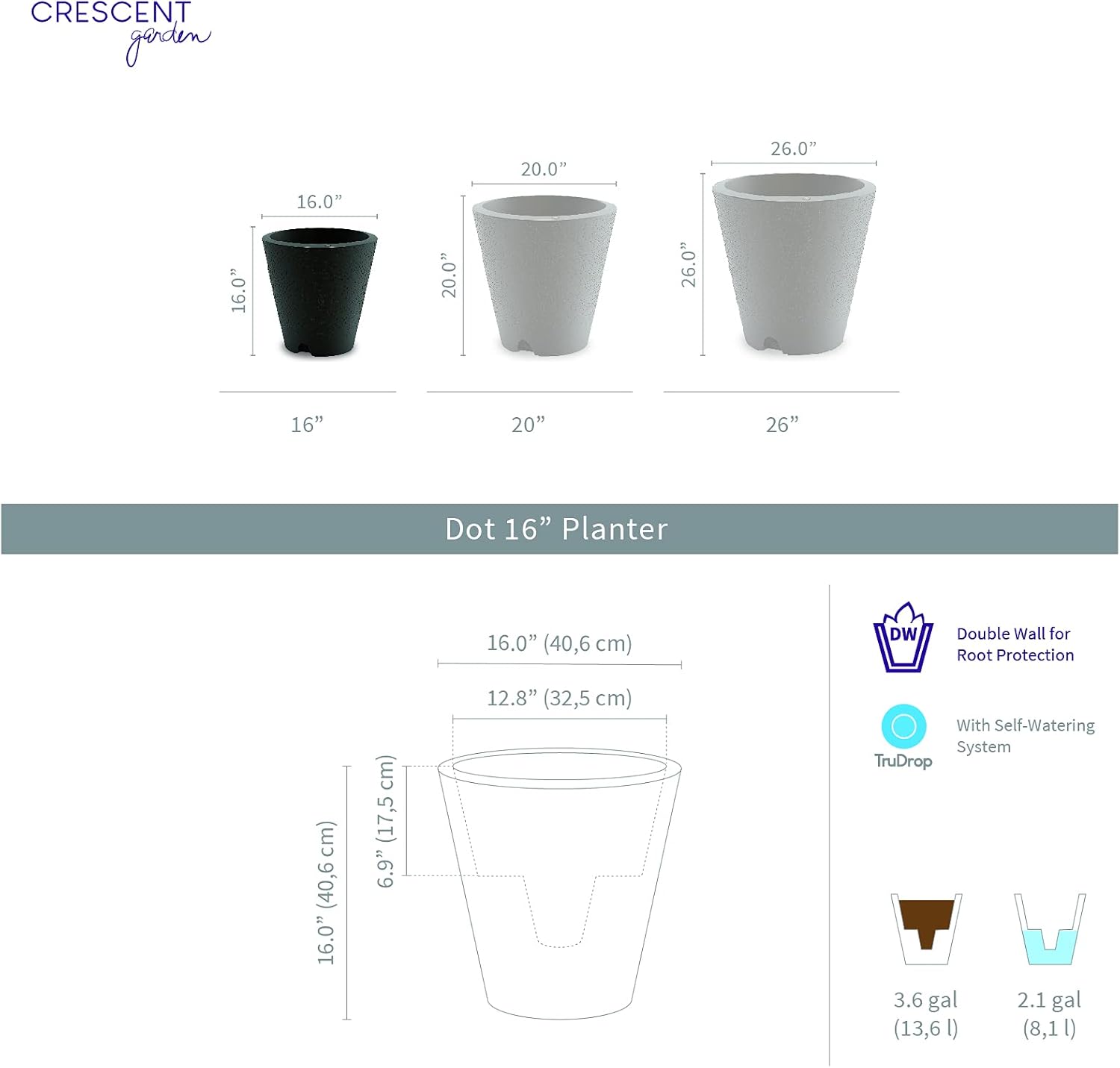 Crescent Garden Dot TruDrop Indoor/Outdoor Planter, Self-Watering Plant Pot, 16 Inches, (Mocha)