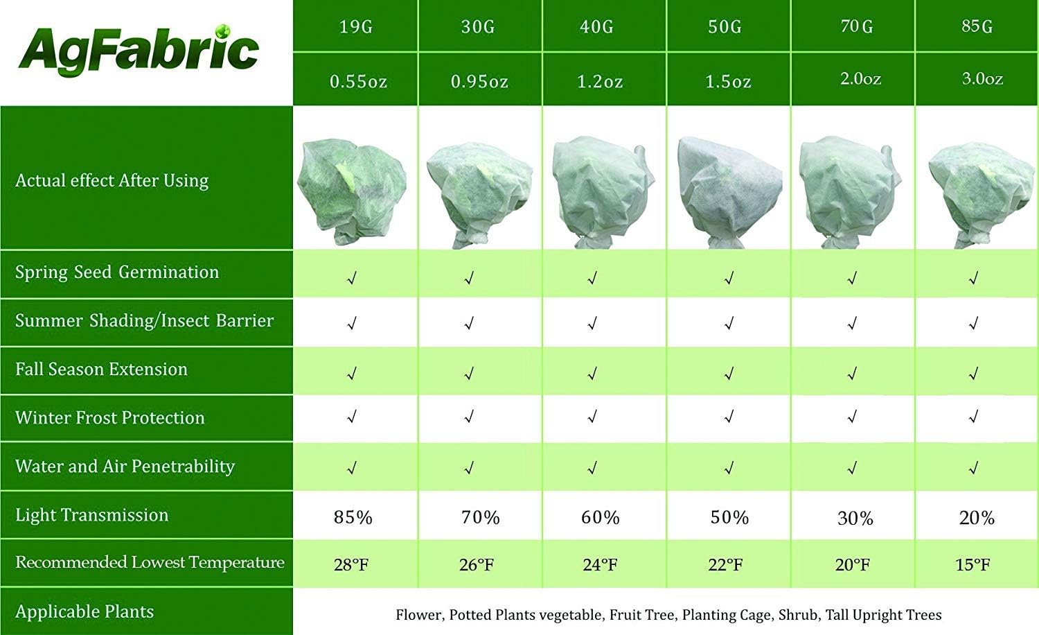- SUITABLE SIZE Perfect for Greenhouse size 130''high and 115''wide, Heavy-weight FRCs (.9-1.2 oz./sq. yard): Are usually used to extend the growing season in spring and fall, allow 30%-50% light transmittance, and recommend 3ยฐ-8ยฐF. of frost protection.