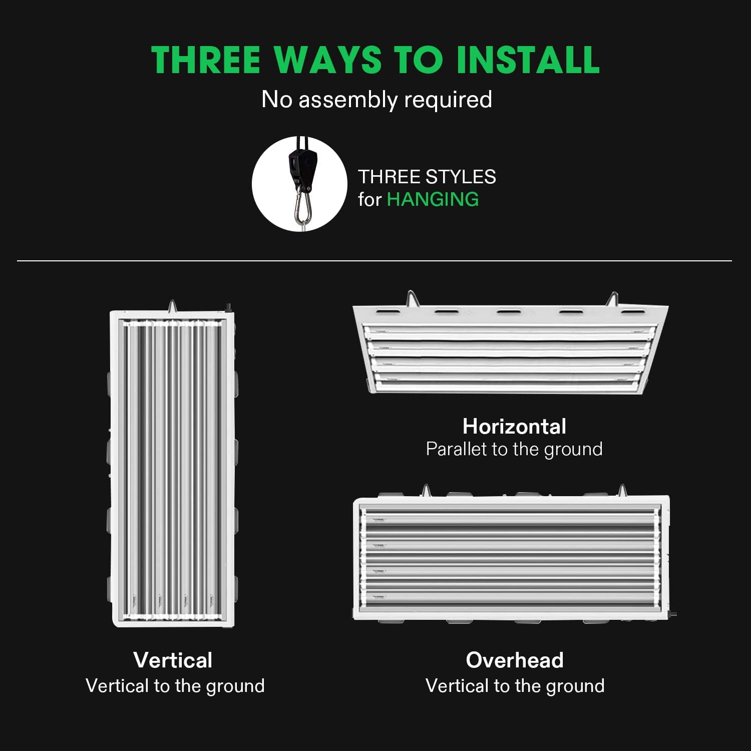 - Versatile Configurations: our T5 Grow Lights for indoor plants offer three styles for hanging to adapt to any indoor growing scenario; Arriving pre-assembled, and with each light capable of connecting to another via plug for expanded coverage