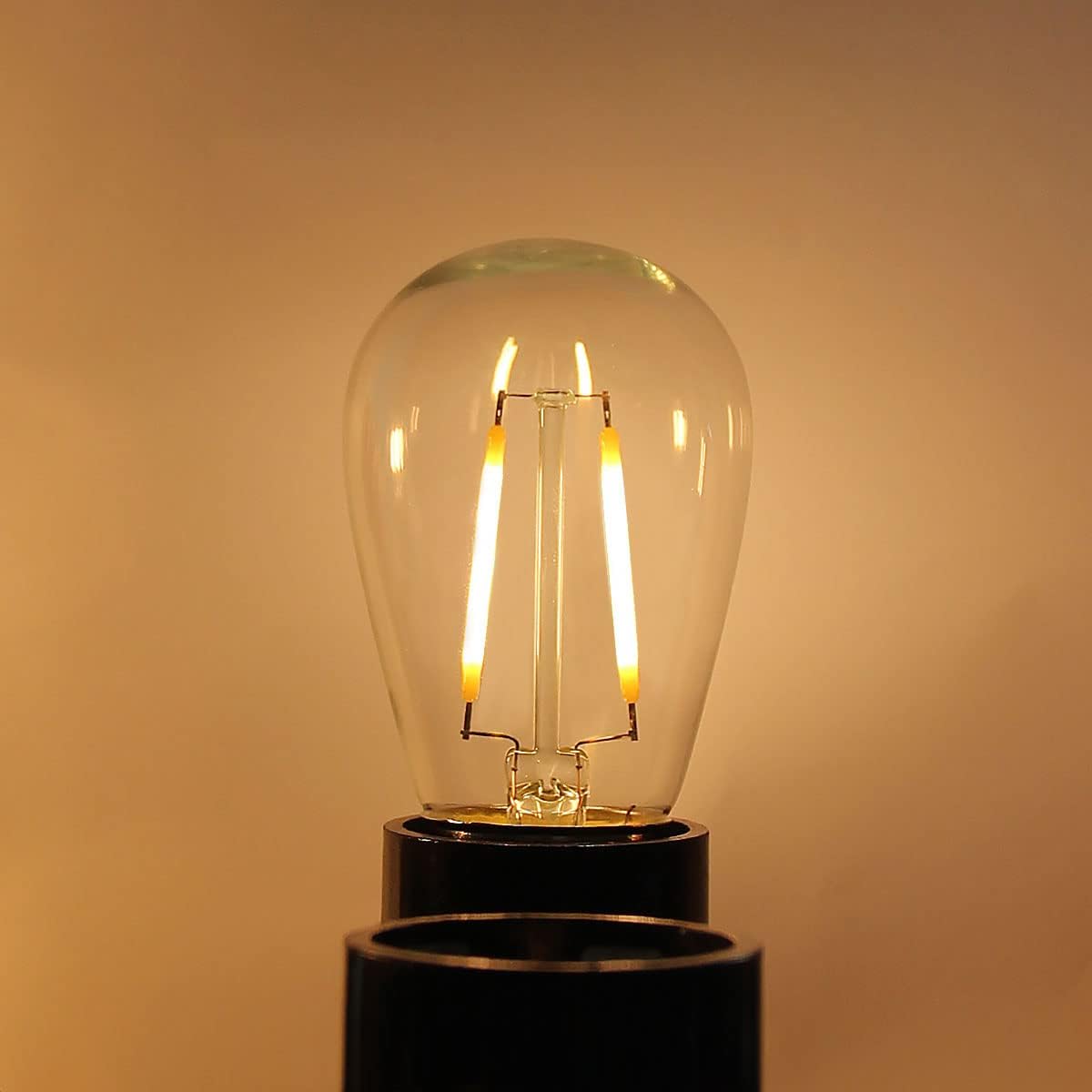 - 💡【2W Replacement Bulb】S14 LED light bulbs 2watt, E26 medium screw base, durable plastic bulb shell, dimmable, to replace 15w to 25w S14 bulbs. 2700K soft warm white color will provide you with a cozy and romantic environment. LED filament technology, vintage look, great for weddings, parties and garden decoration.