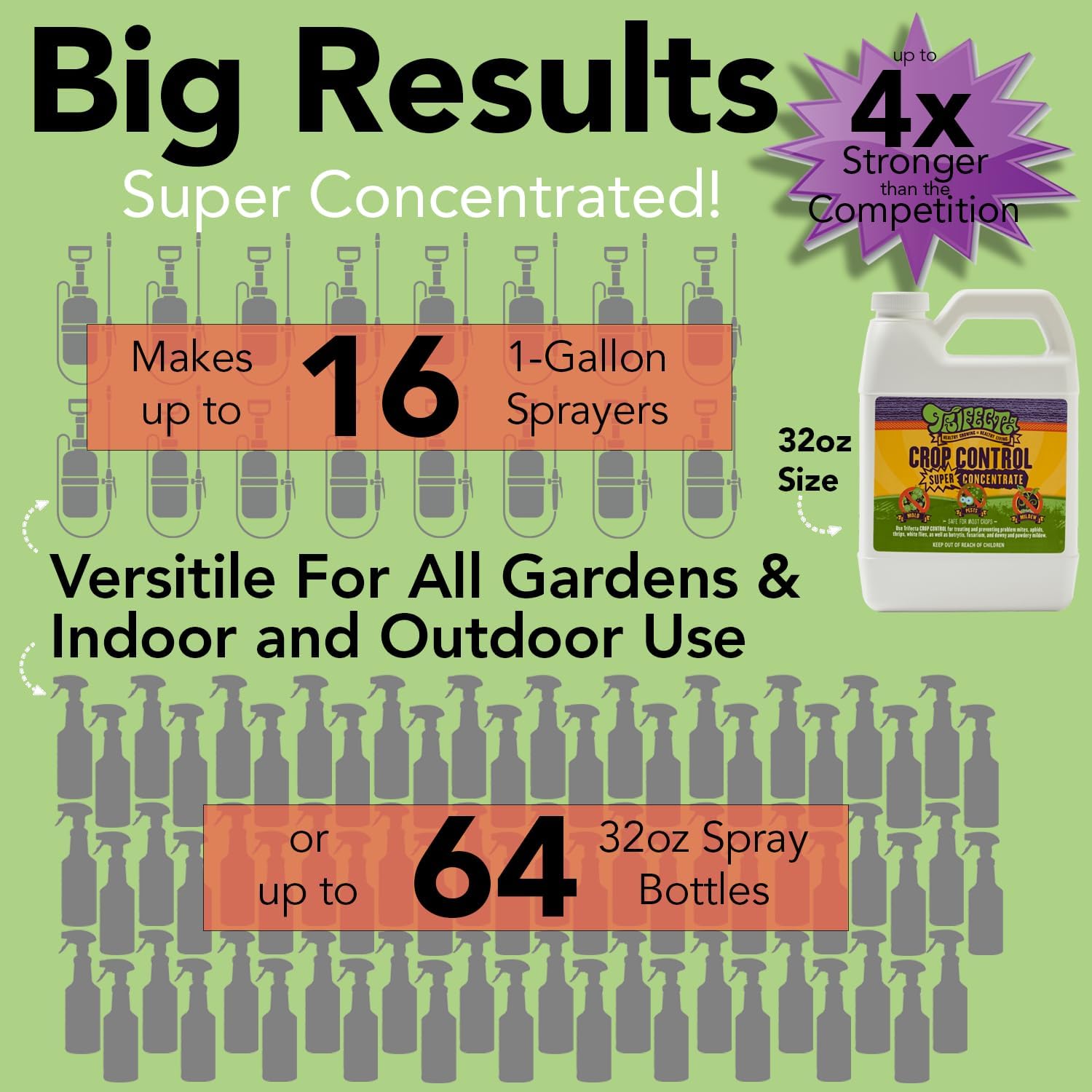 - GUARANTEED TO WORK FOR YOU - We are totally confident that Trifecta Crop Control will work for you, as it has for thousands of other growers. With your Trifecta Crop Control purchase, you are protected by Amazon's money back guarantee (all terms apply) so you can order now with CONFIDENCE