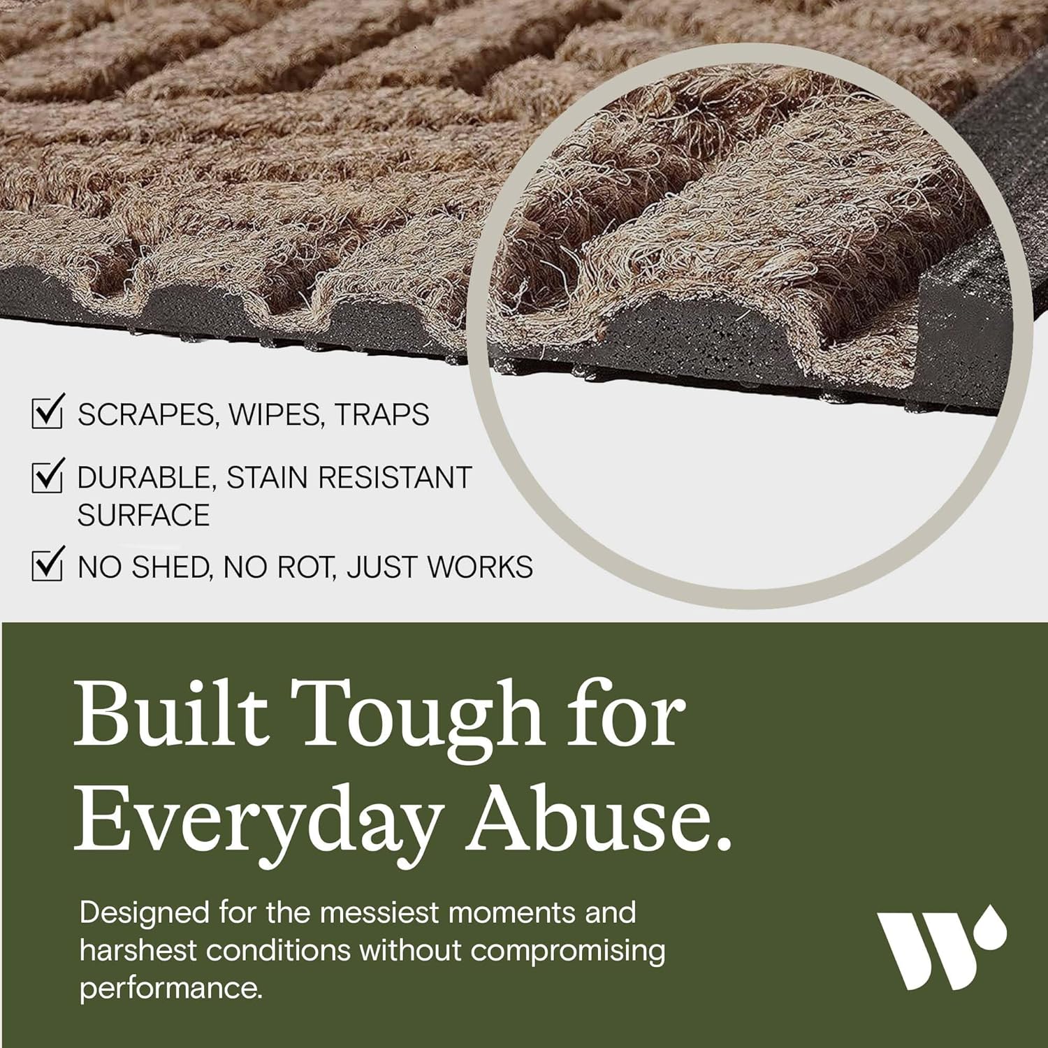 - EASY CARE AND MAINTENANCE: This heavy-duty entry mat requires minimal upkeep—just shake, vacuum, or scrub off debris, rinse with a hose, and let it air dry. Built to endure, its durable design makes it a long-lasting, all-weather door mat for your home.