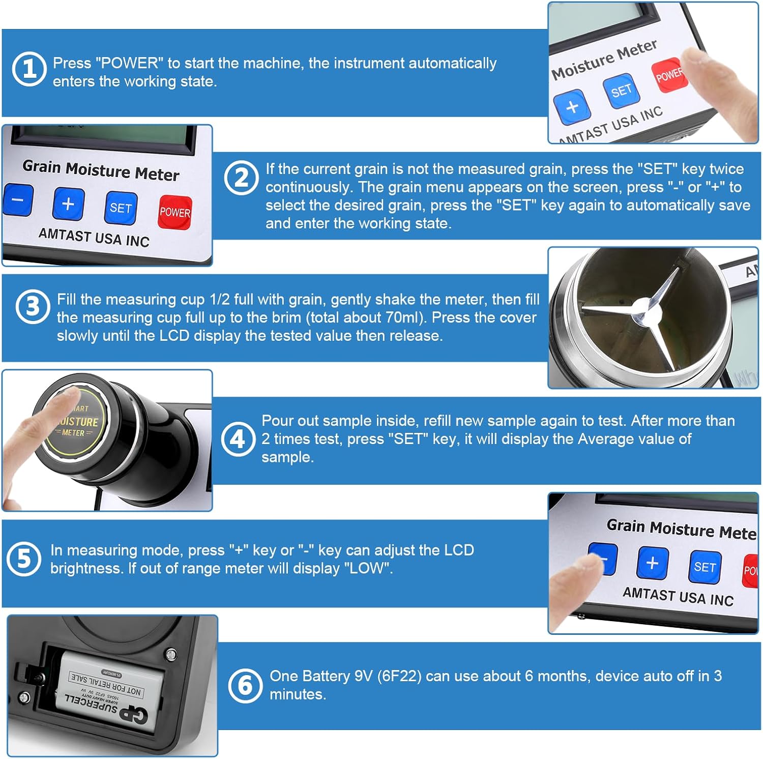 - πππ πππππ πππππππππππ β Our seed moisture tester is engineered for long-lasting use, operating on a 9V battery that lasts up to one year. It features an automatic shutdown function to conserve battery life, making it an economical choice for continuous use. Whether testing flaxseed, almonds, or cashews, this tester ensures that users can efficiently manage their resources while obtaining precise moisture readings with minimal power consumption.