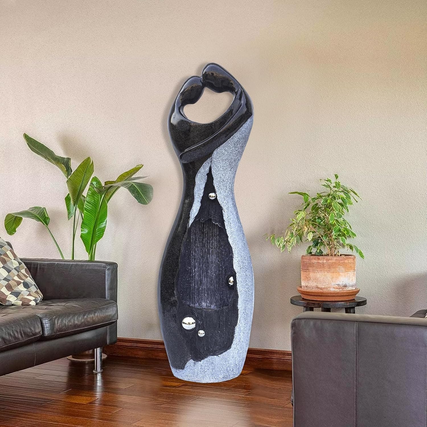 Modern Waterfall Fountains Graceful Hugging Couple Gurgling Water Features Outdoor Indoor Garden Faux Stone Zen Fountain in Marble Color for Courtyard, Patio, Lawn, Lobby 47" Height