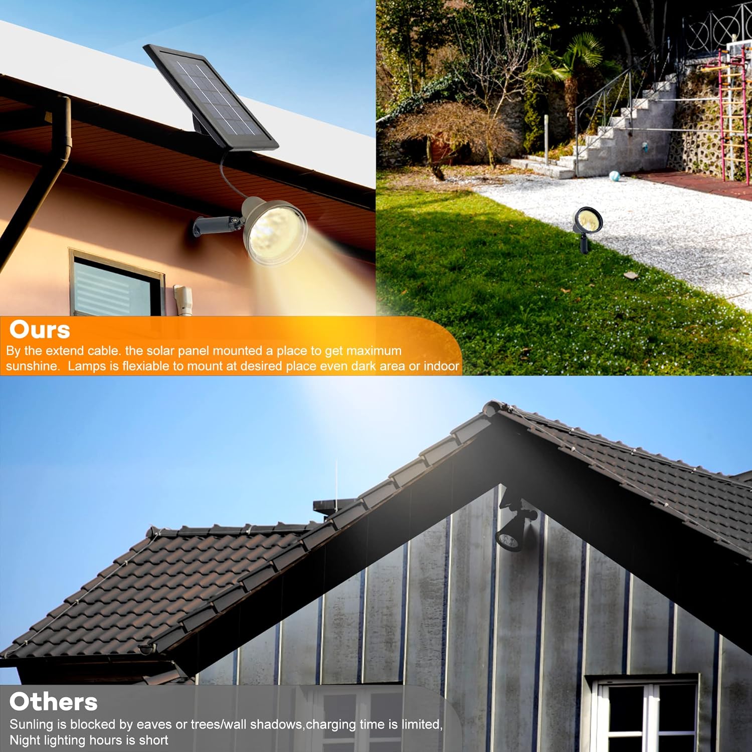 - 【Solar Light With Separate Solar Panel】Waterproof 16.4Ft Extension Cables to Let You PLACE The Spotlights at Favorite Places Even NO SUNSHINE or Indoor.Two-Ways Mounting: Stick into the ground with stakes
