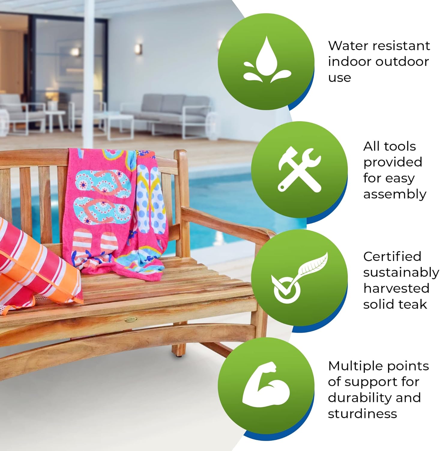 - ☔NATURALLY RESISTANT TO WATER: In addition to being carefully crafted teak wood has natural water-resistant properties, which makes this teak wood garden bench perfect for the outdoors such as in a garden, patio, or backyard. Fine-grade solid teak can be used outside for many years because it stands up well in all weather conditions.