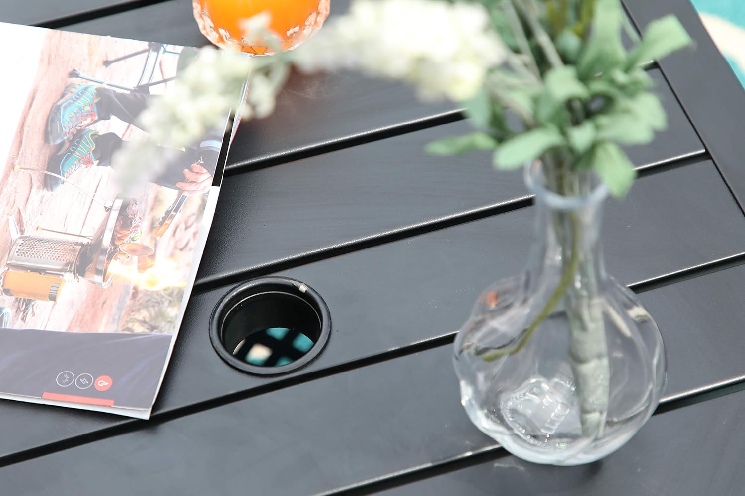 - This black table designed with reinforced integral steel construction, makes this patio table durable and sturdy enough for outdoor and indoor use. With a modern, it provides comfortable dining and chatting environment