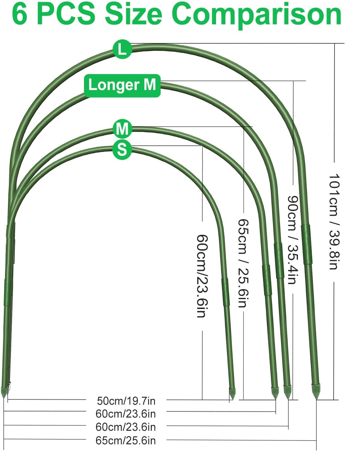 FOTMISHU 6Pcs Garden Hoops, 19.7"x23.6" Greenhouse Hoops Rust-Free Grow Tunnel, Garden Stake with Plastic Coated Plant Supports for Raised Beds Row Cover Garden Fabric