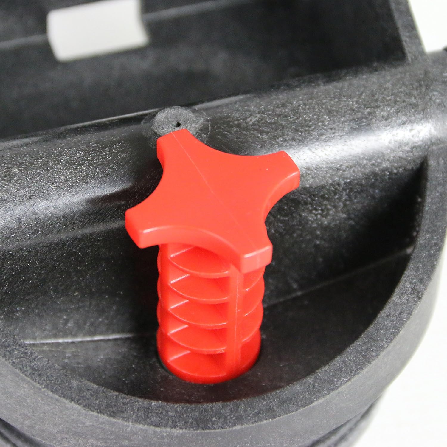 - Rigid inlet tube with filter for debris-free mixing and drain plug with valve to quickly empty the tank after each use