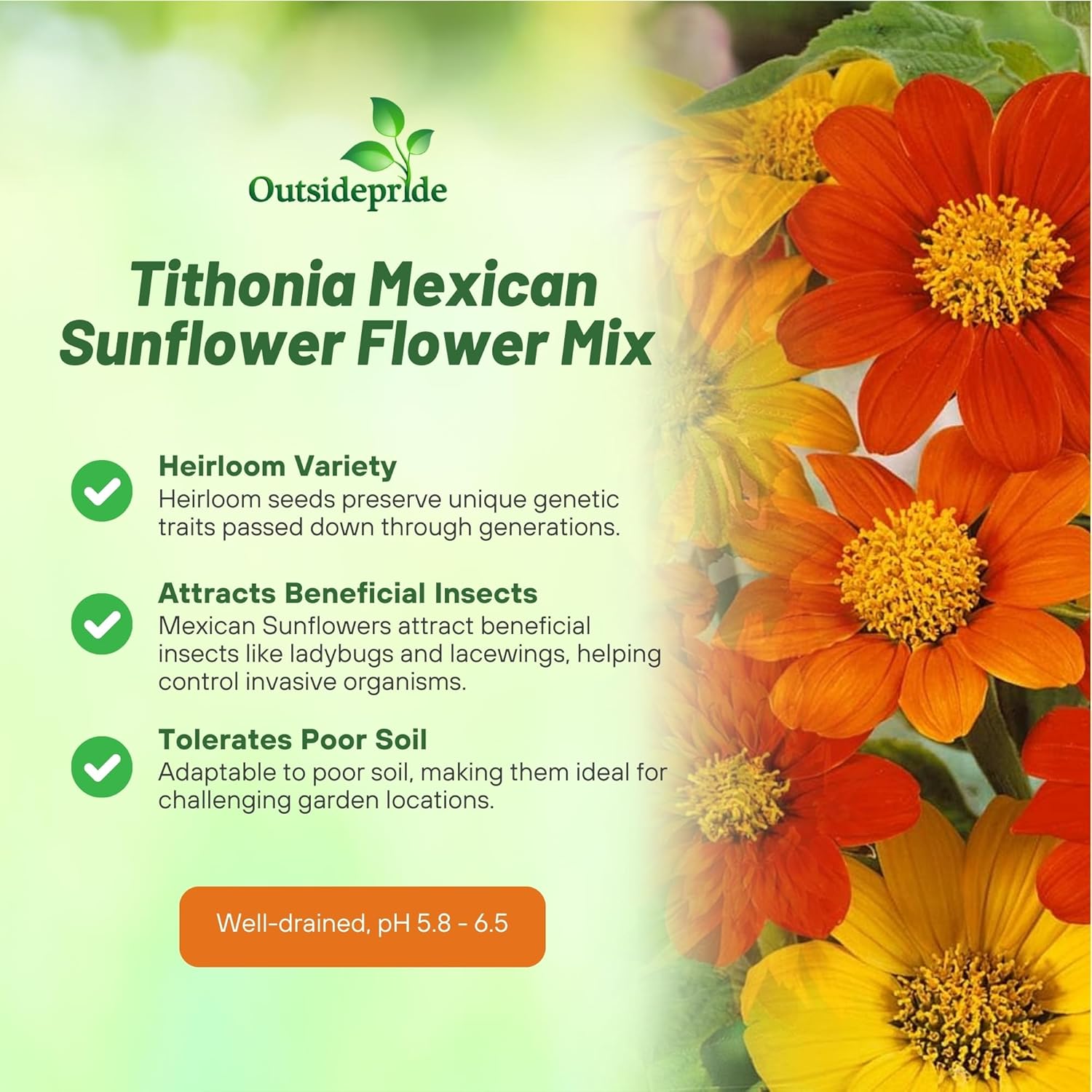 - STUNNING MIXED BLOOMS: Our Mexican sunflower seeds produce 3-inch wide, vibrant mixed flowers that brighten flower beds, borders, and landscaping designs. These blooms are also great as cut flowers, enhancing arrangements with bold color. Perfect for gardeners seeking flower seeds to plant outside.