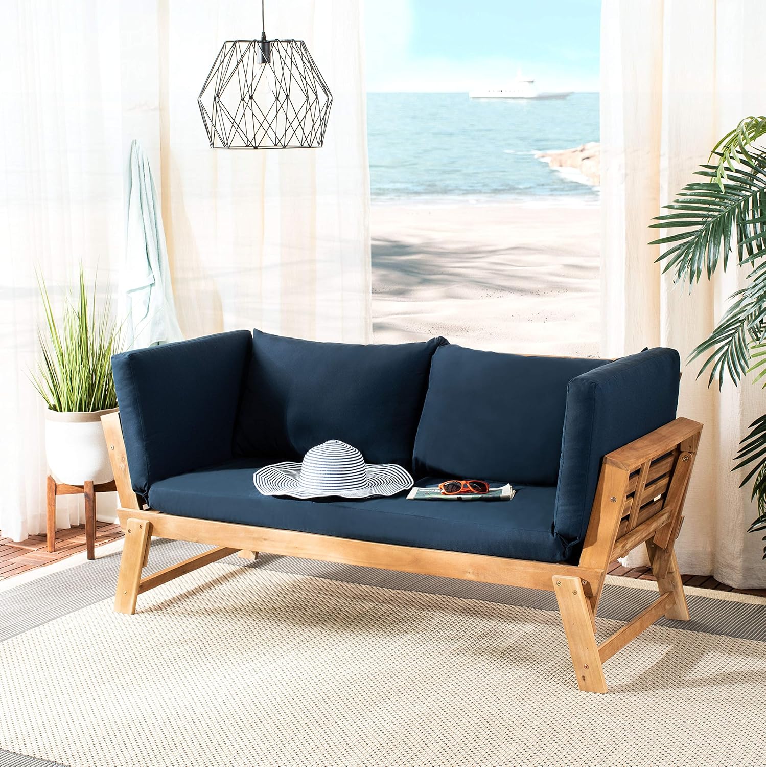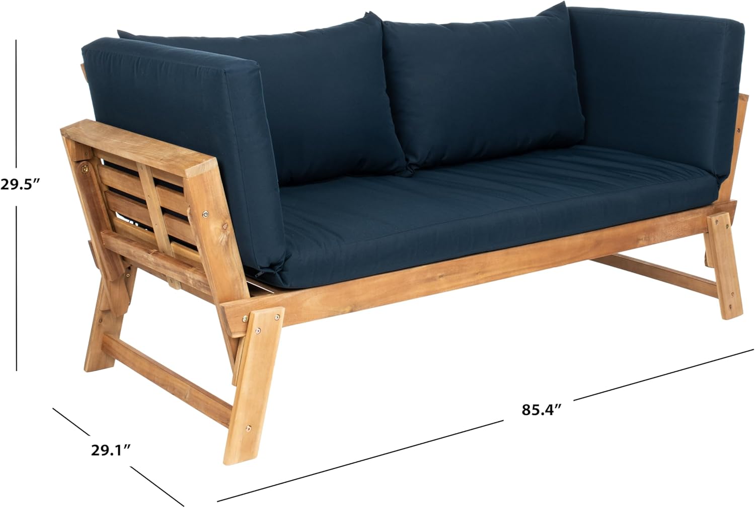 - The teak finish and Navy Upholstery of this day bed will add the perfect accent to any outdoor space