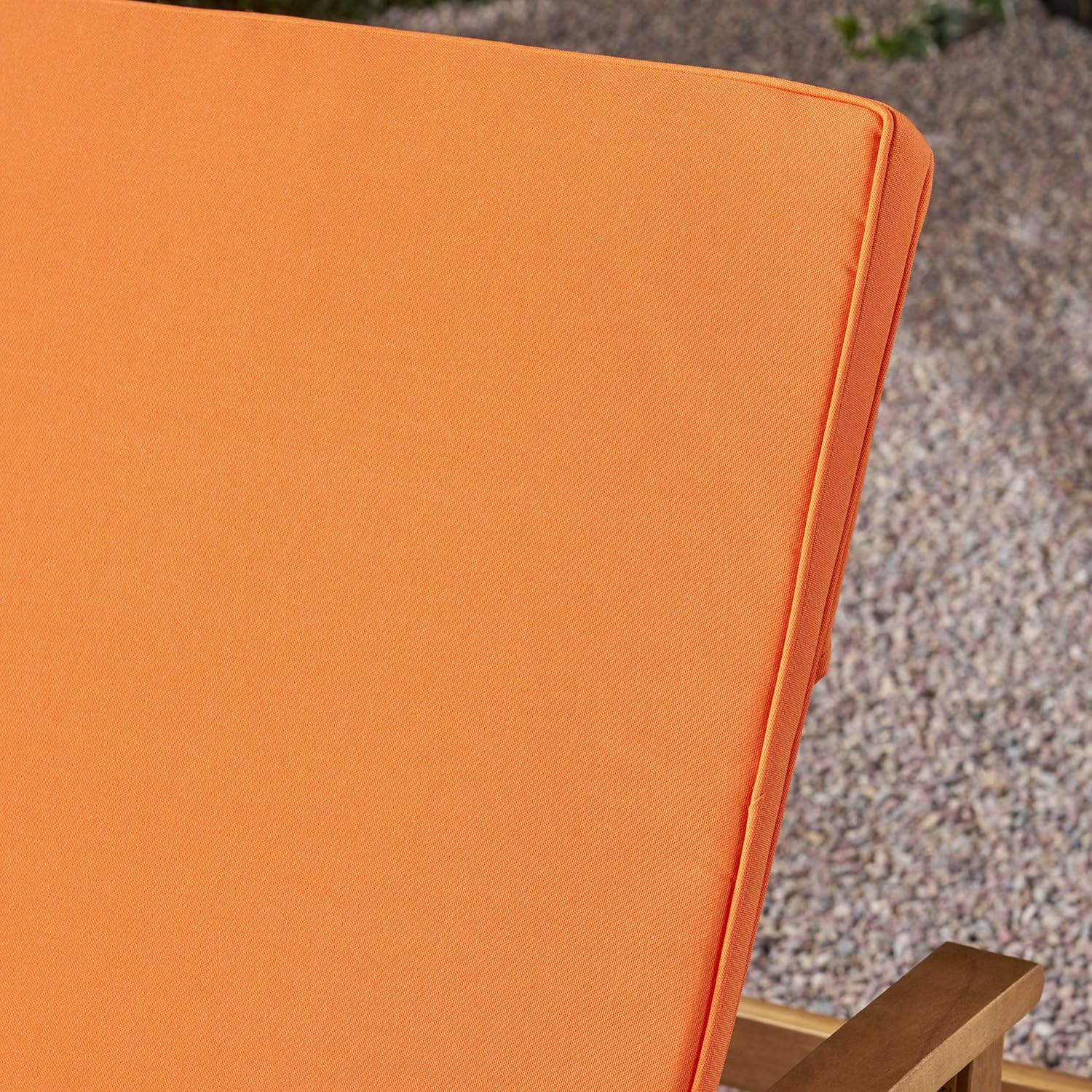 Christopher Knight Home Samantha Double Chaise Lounge for Yard and Patio, Acacia Wood Frame, Teak Finish with Orange Cushions