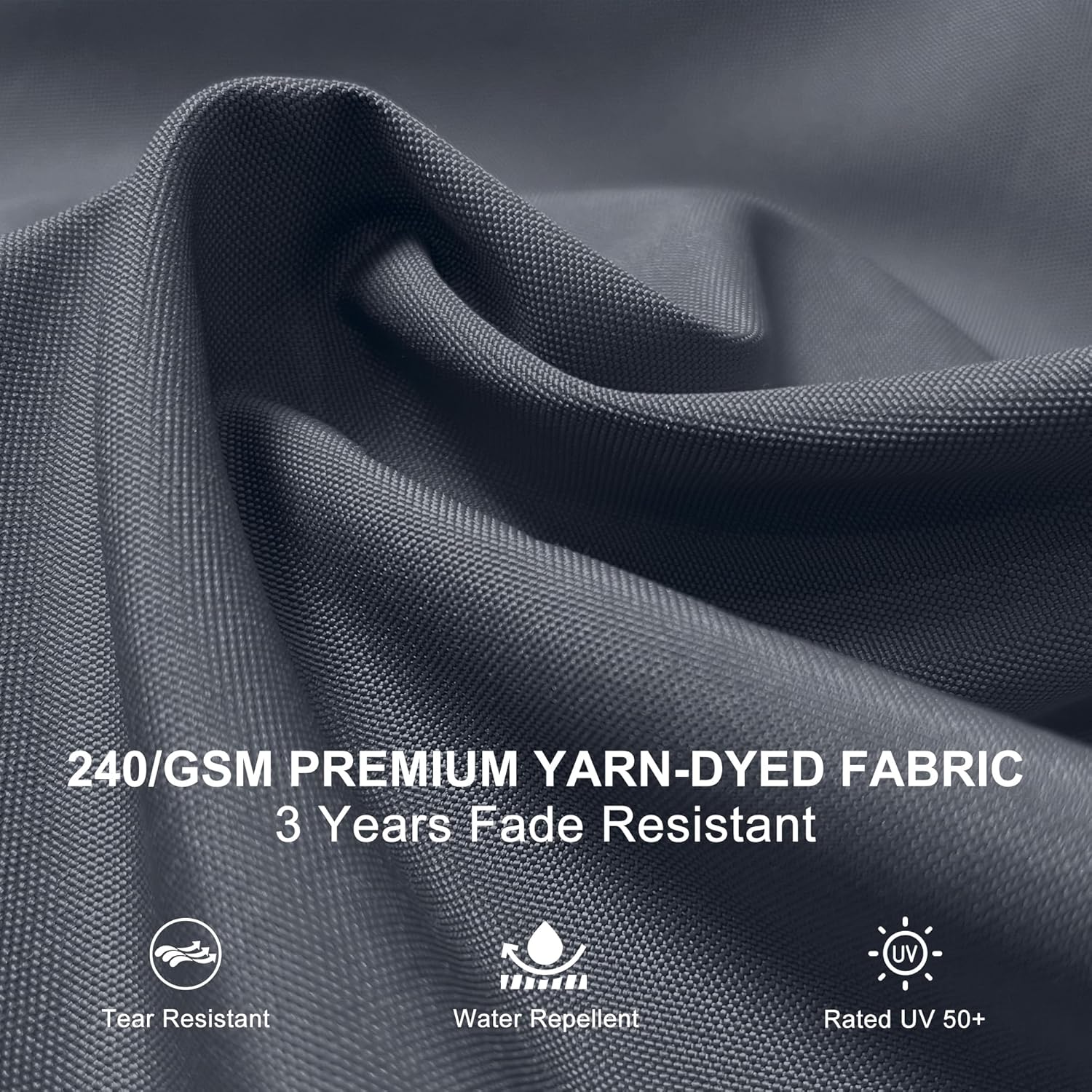 - High quality 240/gsm yarn-dyed polyester fabric, UV resistant, water-repellent and colorfast fadeless
