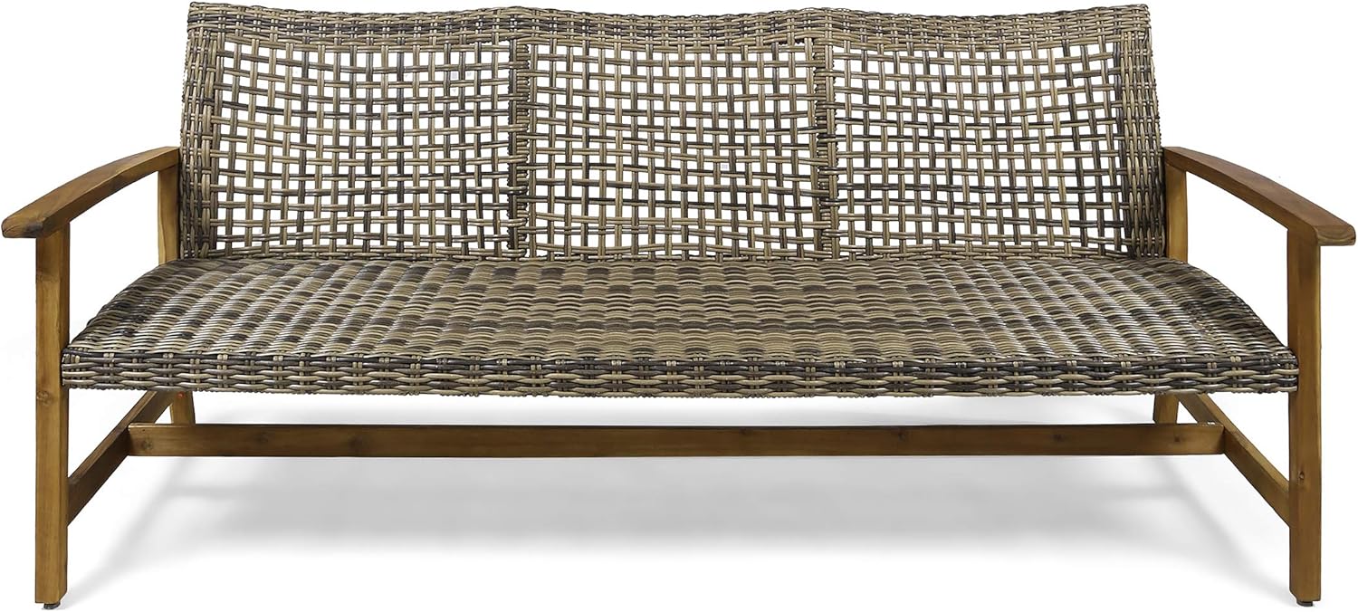 Christopher Knight Home Marcia Outdoor Wood Sofa, Wicker, 75.50 x 31.00 x 31.50, Gray, Natural Stained Finish
