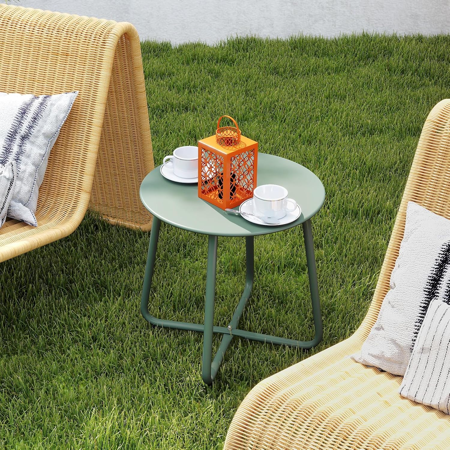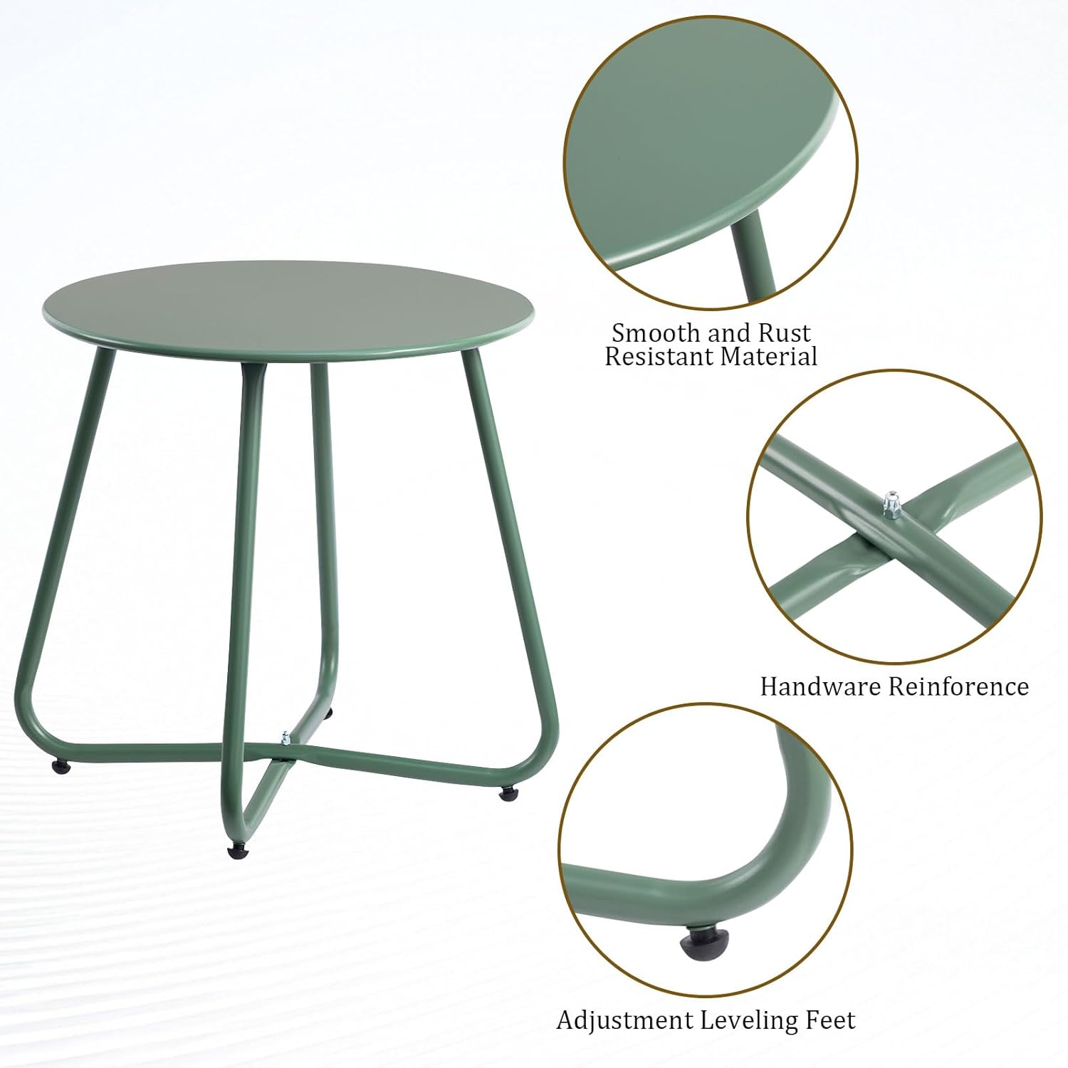 HollyHOME Round Metal Side Table, Rust-Resistant Patio Small Plant Stand, Outdoor 17.32'' Portable End Table for Balconies, Gardens, Living Rooms and Bedrooms, Atrovirens