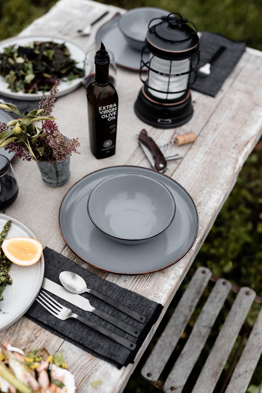 - Complete Camping Cookware Set: This set includes everything you need to enjoy a meal in the great outdoors. It includes forks, spoons, and knives, all the essential dinner utensils, packed in a convenient carrying case