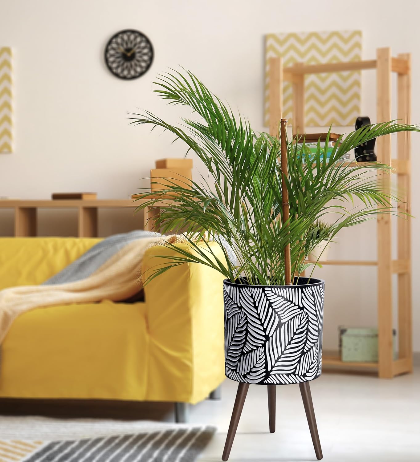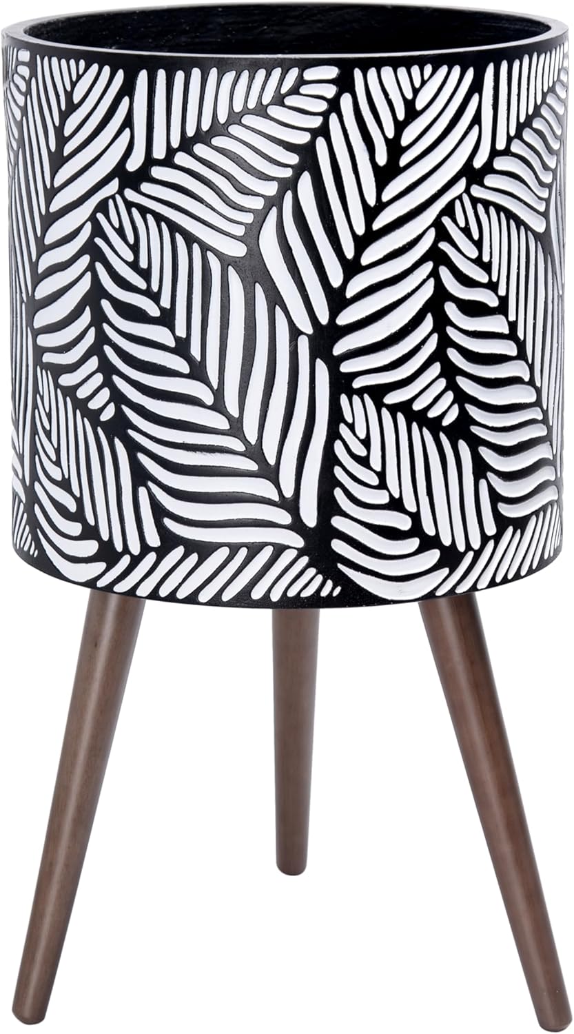 - Whatโs included: planter pot with drainage hole, drainage plug, set of stand โ 3 solid wooden legs.