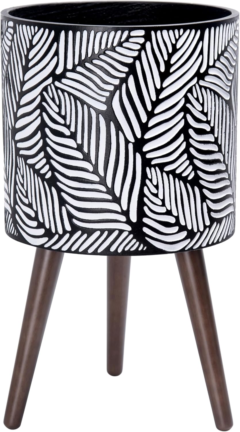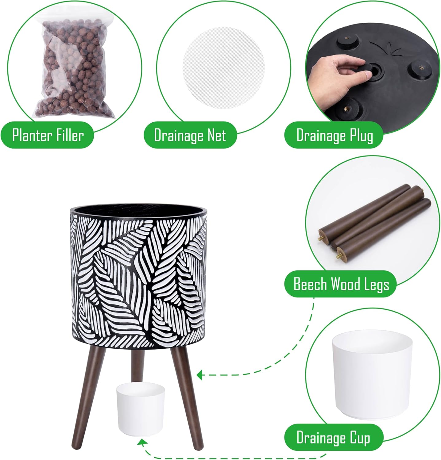 - Whatโs included: planter pot with drainage hole, drainage plug, set of stand โ 3 solid wooden legs.
