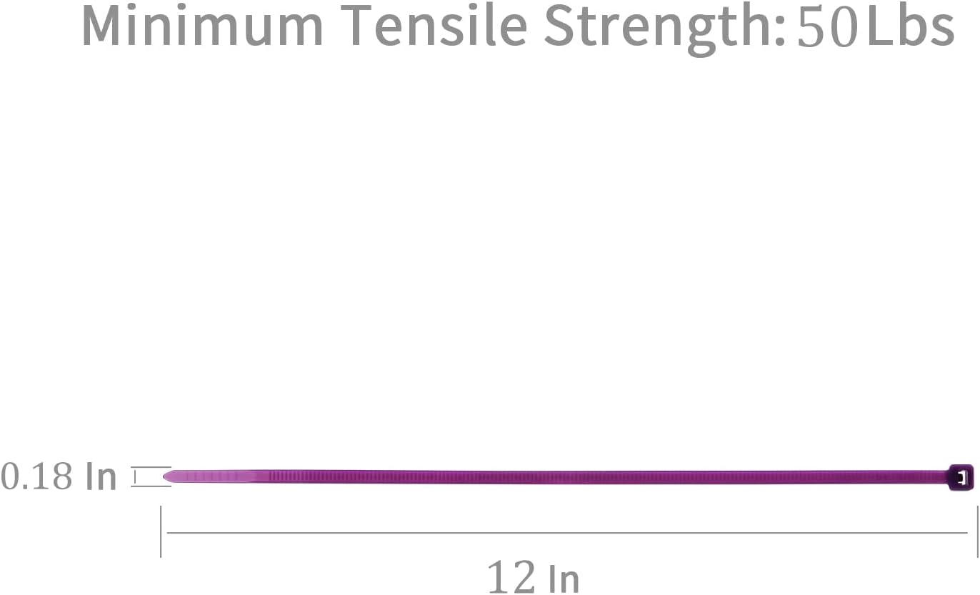 XINGO 100PCS Cable Zip Ties Heavy Duty, Premium Nylon Plastic Wire Ties with 50 Pounds Tensile Strength, Self-Locking Black Nylon Zip Ties for Indoor and Outdoor (12 inch, Purple)