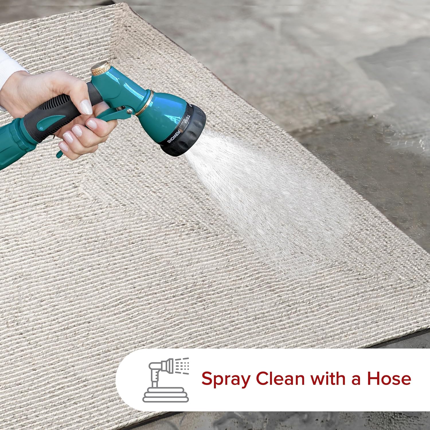 - Outdoor Rug Care Instructions: Easy to care for, simply shake out your outdoor rug to remove any light dirt or debris and spray your area rug with a hose for stubborn stains. This is the perfect patio rug or front porch rug to elevate your home.