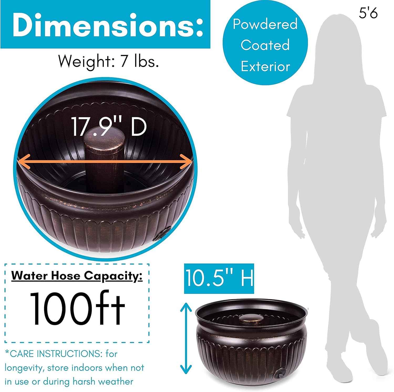 BIRDROCK HOME Water Hose Holder - Decorative Metal Pot, Indoor or Outdoor, Garden Storage Organizer, Patio Portable Bucket - Distressed Bronze, Holds up to 100ft Hoses, Medium No Lid