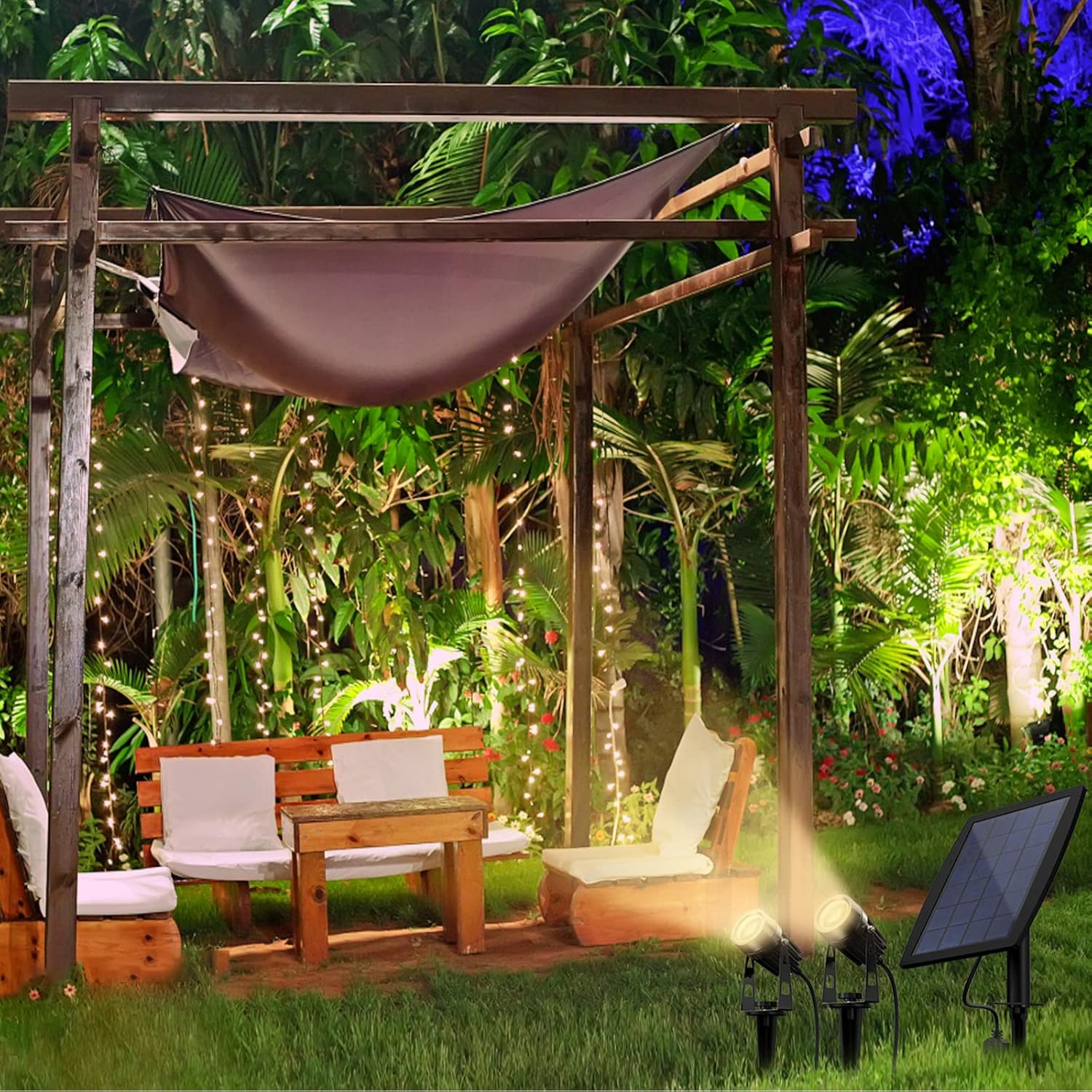 - FLEXIBLE & ADJUSTABLE: A separate solar panel allows solar spotlights outdoor for greater overall flexibility and avoids two lights' overexposure to the sun's rays, two lights with adjustable heads can be adjusted to 90Β° to highlight your garden for outdoor accent lighting. NOTE: The solar landscape lighting is Not Motion Sensor.