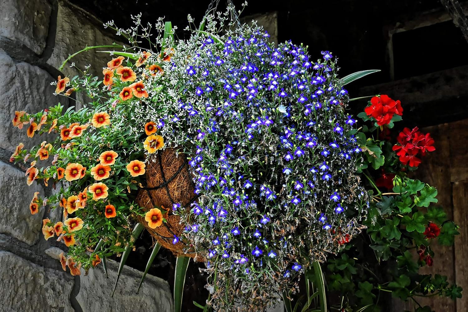 - Pre-formed coconut liner, conveniently secured to hanging basket. Ideal for planting flower plants such as ivy, snapdragon, chlorophytum plant, etc.
