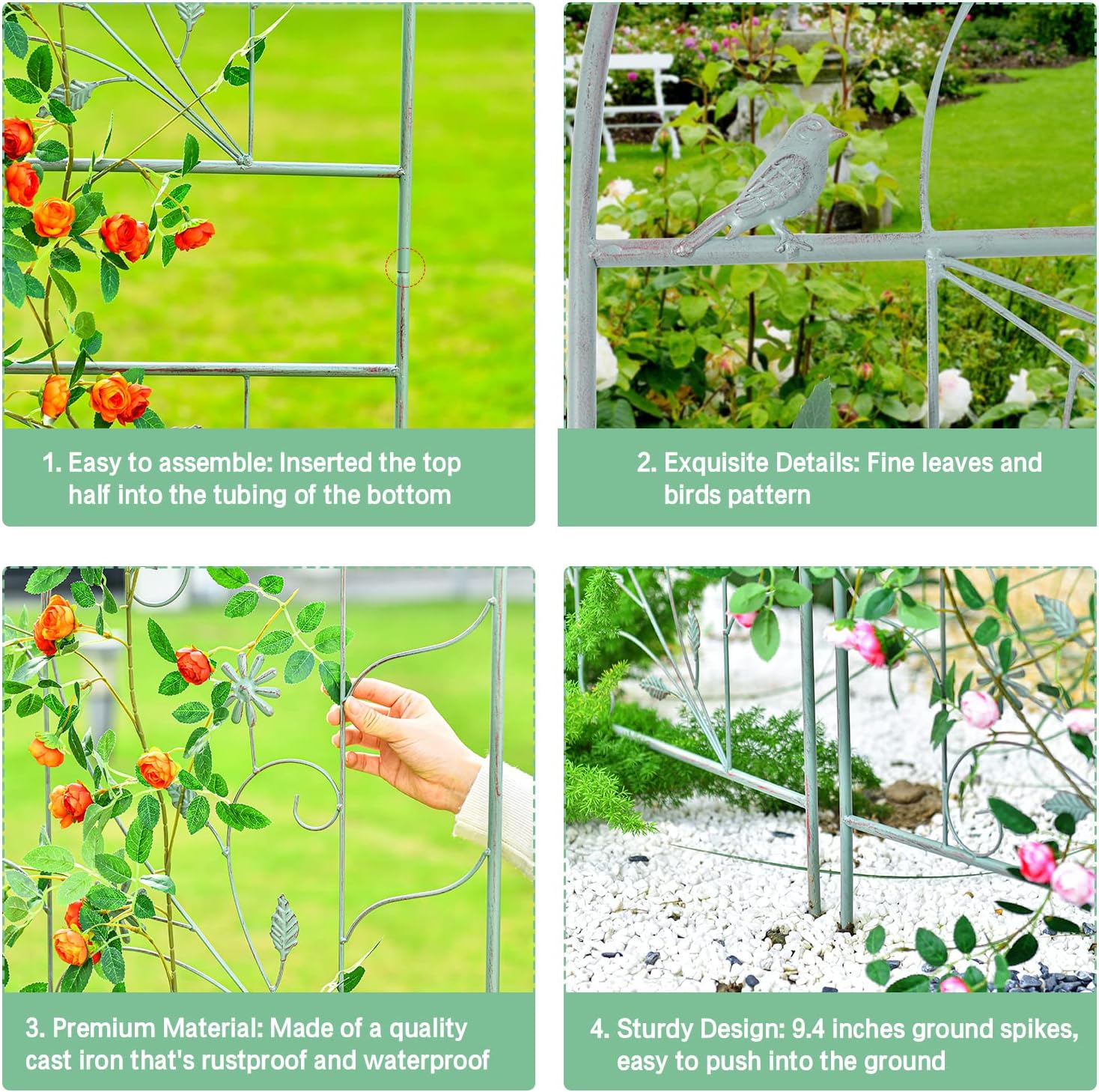 Sungmor Large Metal Garden Trellises for Climbing Plants - 82.5 Inch Tall & 2PC Green Pack - Beautiful Retro Style Metal Fence Trellis - Gardening Vines Plant Support for Flower Rose Climbing