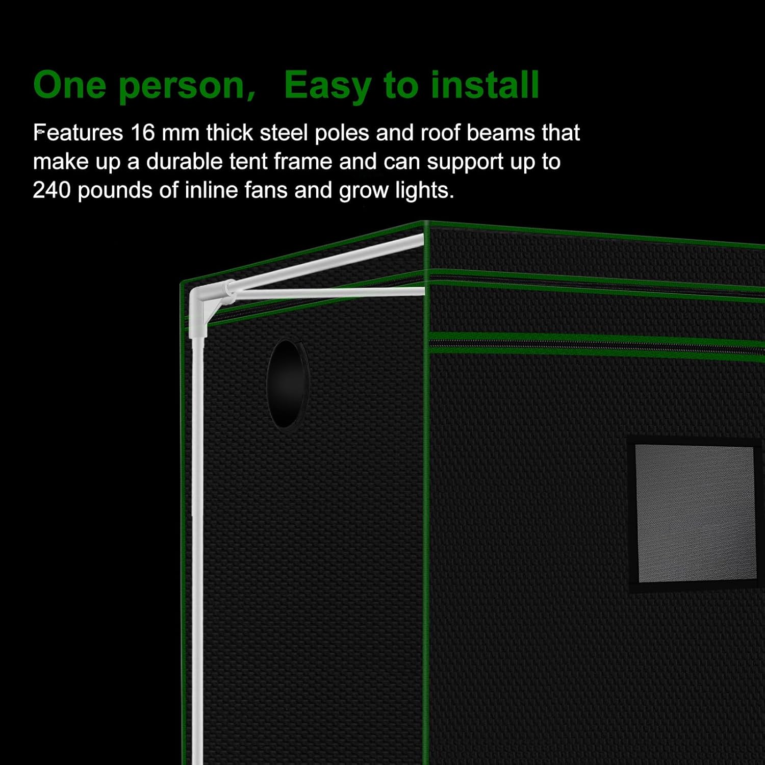 - 【Easy to operate】: Our indoor grow tents are equipped with a large heavy-duty zipper door for you to easily put in/take out plants , and the 4x8 grow tent design with large transparent observation windows allows you to easily observe the internal plant status of the grow tent at any time.