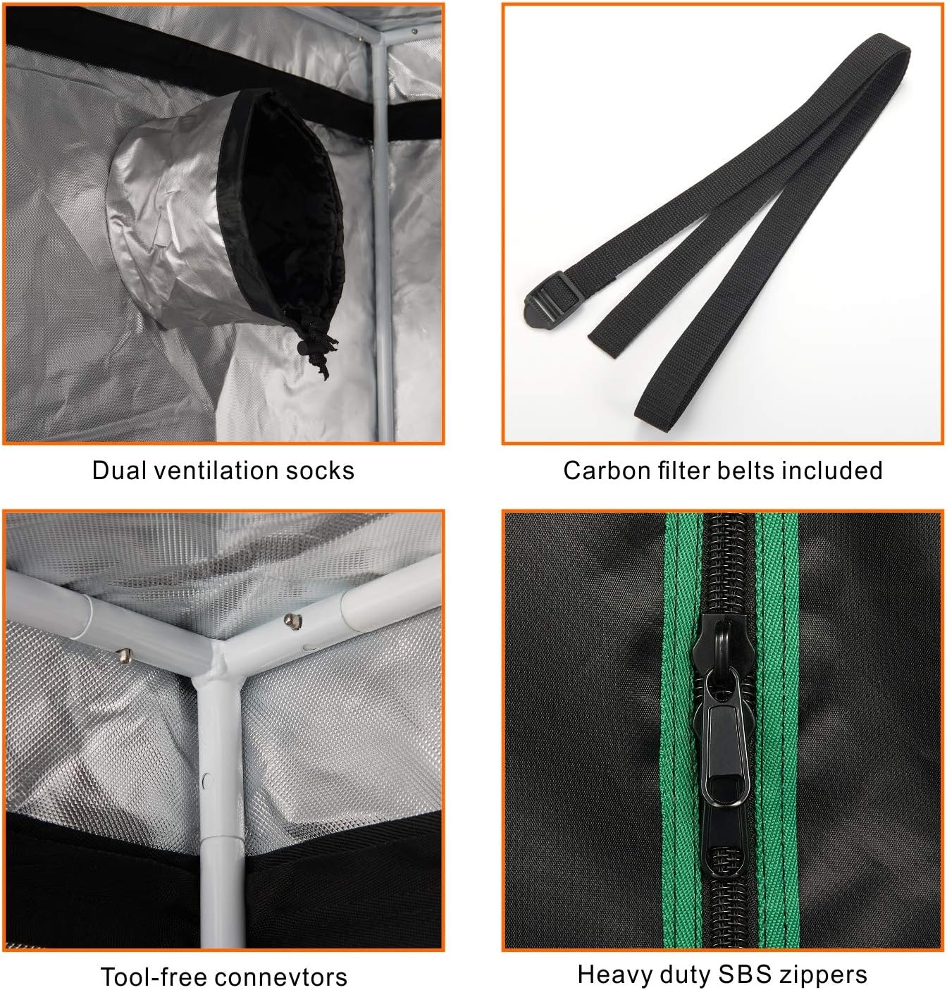- 【Easy to operate】: Our indoor grow tents are equipped with a large heavy-duty zipper door and storage bag for you to easily put in/take out plants and store growing accessories, and the 5x5 grow tent design with double transparent observation windows allows you to easily observe the internal plant status of the grow tent at any time.
