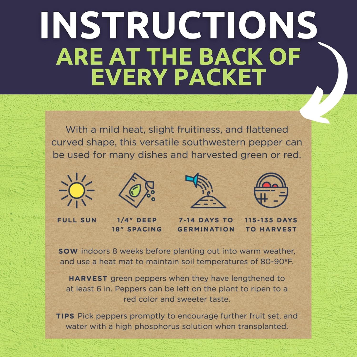 - 8 INDIVIDUAL SEED PACKETS: Joe E. Parker Anaheim Pepper, Cayenne Spicy Pepper, Orange Habanero Pepper, Hungarian Hot Wax Spicy Pepper, Jalapeño Spicy Pepper, Red Habanero Pepper, Shishito Pepper, Poblano Spicy Pepper.