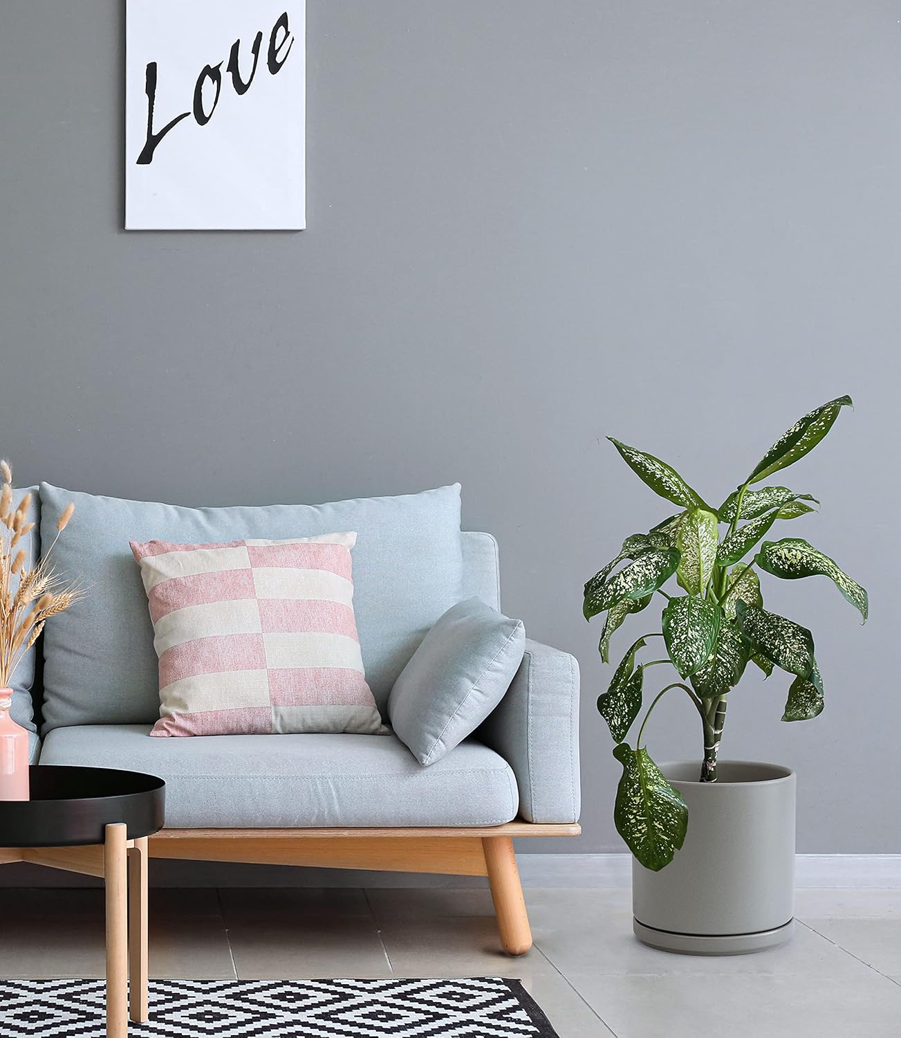 - Simple, elegant, and modern cylindrical straight round planter pot with saucer and drainage hole.