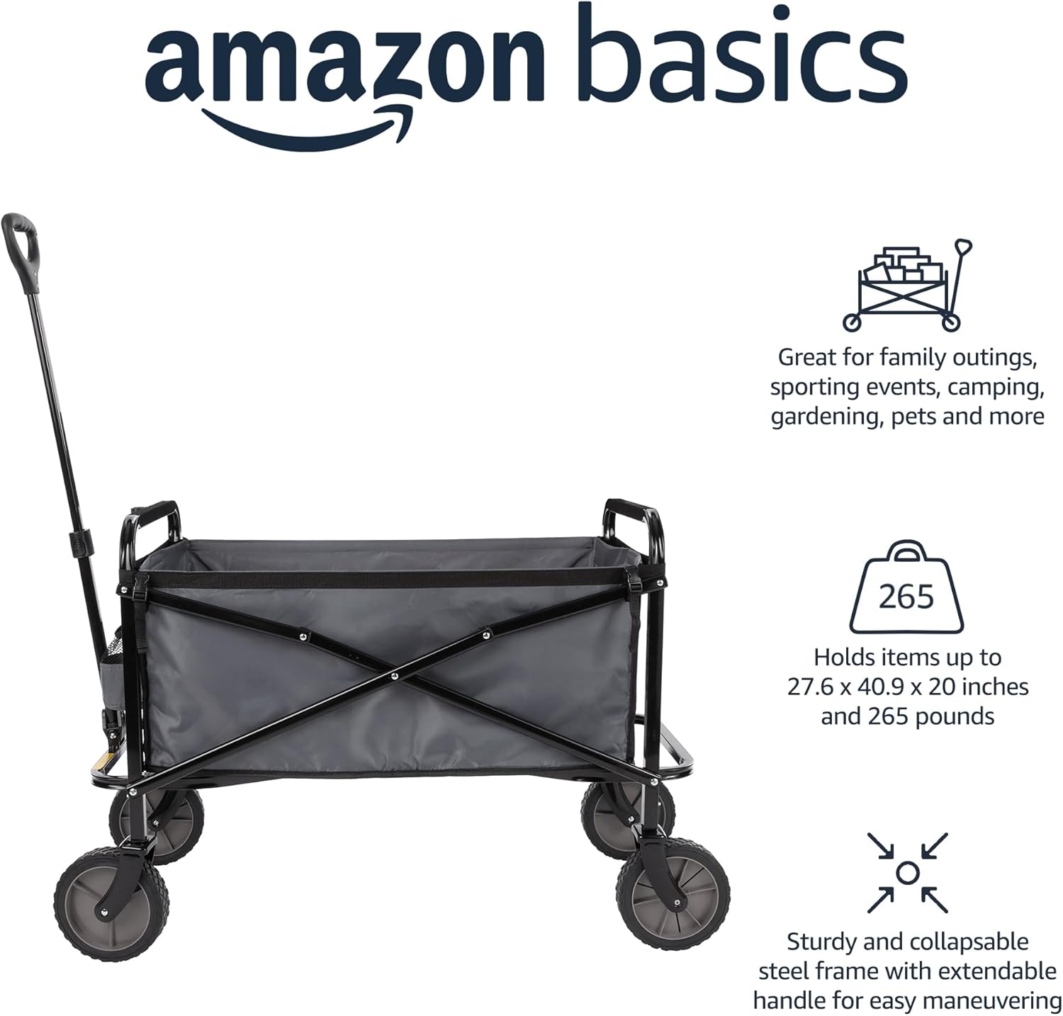 Amazon Basics Collapsible Folding Heavy Duty Utility Wagon for Outdoor Sports, 265 pounds Weight Capacity, Camping, Garden, and Shopping, 27.6 x 40.9 x 20 inches, Gray