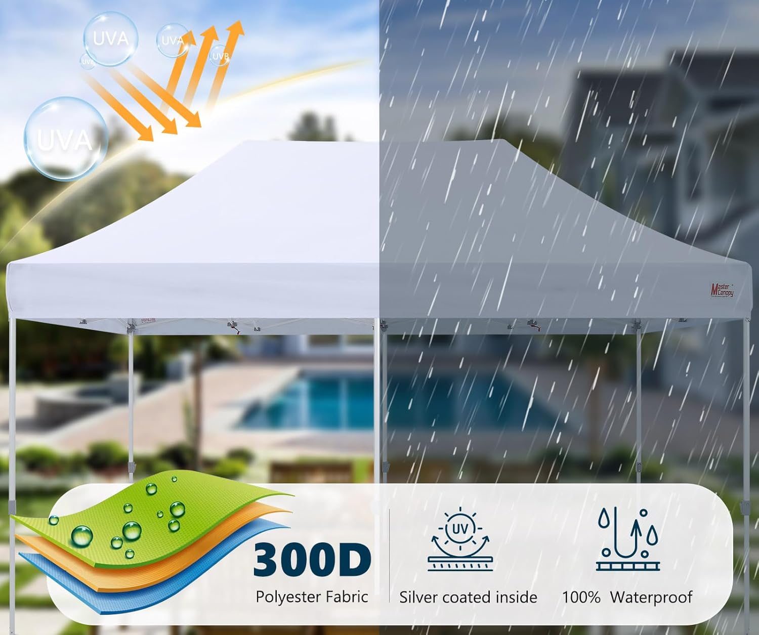- ✅Large Space: 10 x 20 Pop Up Canopy with straight legs provides a true 200 square feet shade. Big enough for about 6-10 people to sit under it. Center height is 132 inch. Suitable for market stalls, parties, picnics or any outdoor events. MASTERCANOPY commercial canopy tent is suitable for both sunny and rainy days.