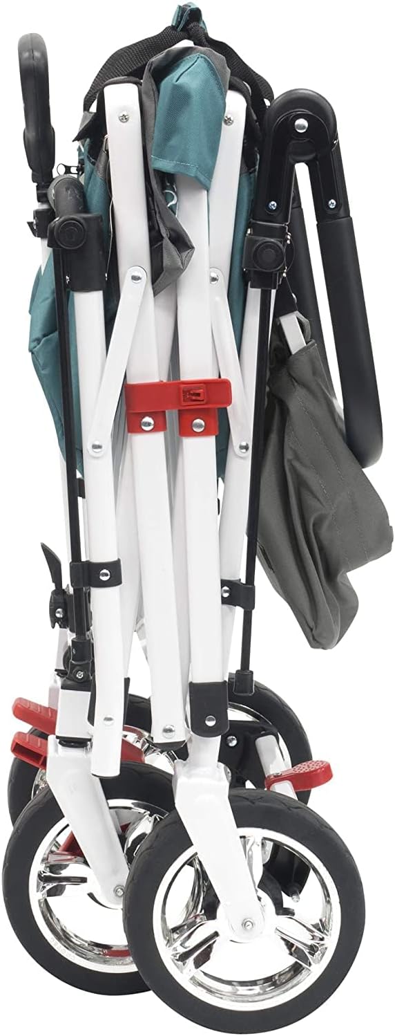Creative Outdoor Wagon, Push and Pull Double Stroller for Toddlers & Kids with Removable Canopy and Seat Belt Harnesses, Collapsible Folding Garden Cart, Adjustable Handle, Beach Wagon (Teal)