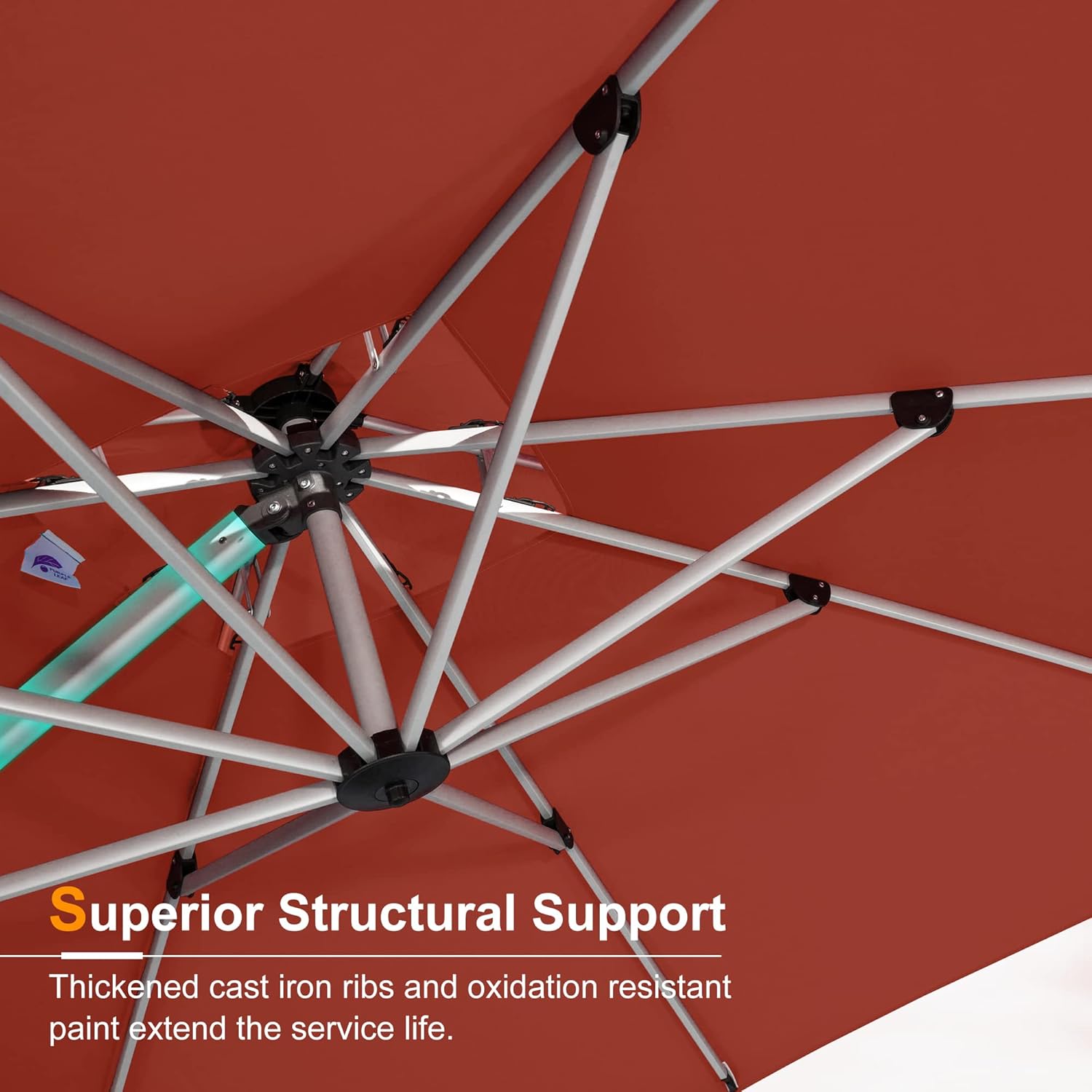 PURPLE LEAF 12 Feet Double Top Round Deluxe Patio Umbrella Offset Hanging Umbrella Outdoor Market Umbrella Garden Umbrella, Brick Red