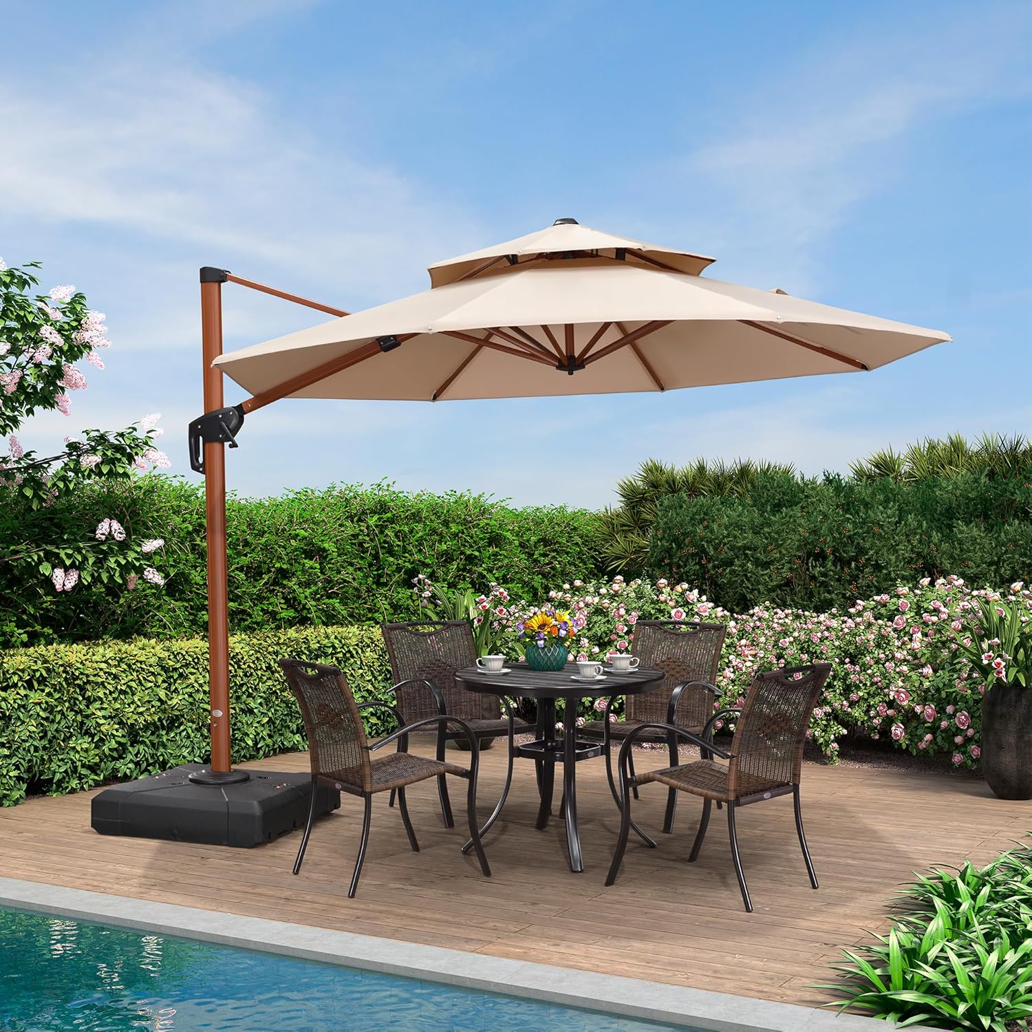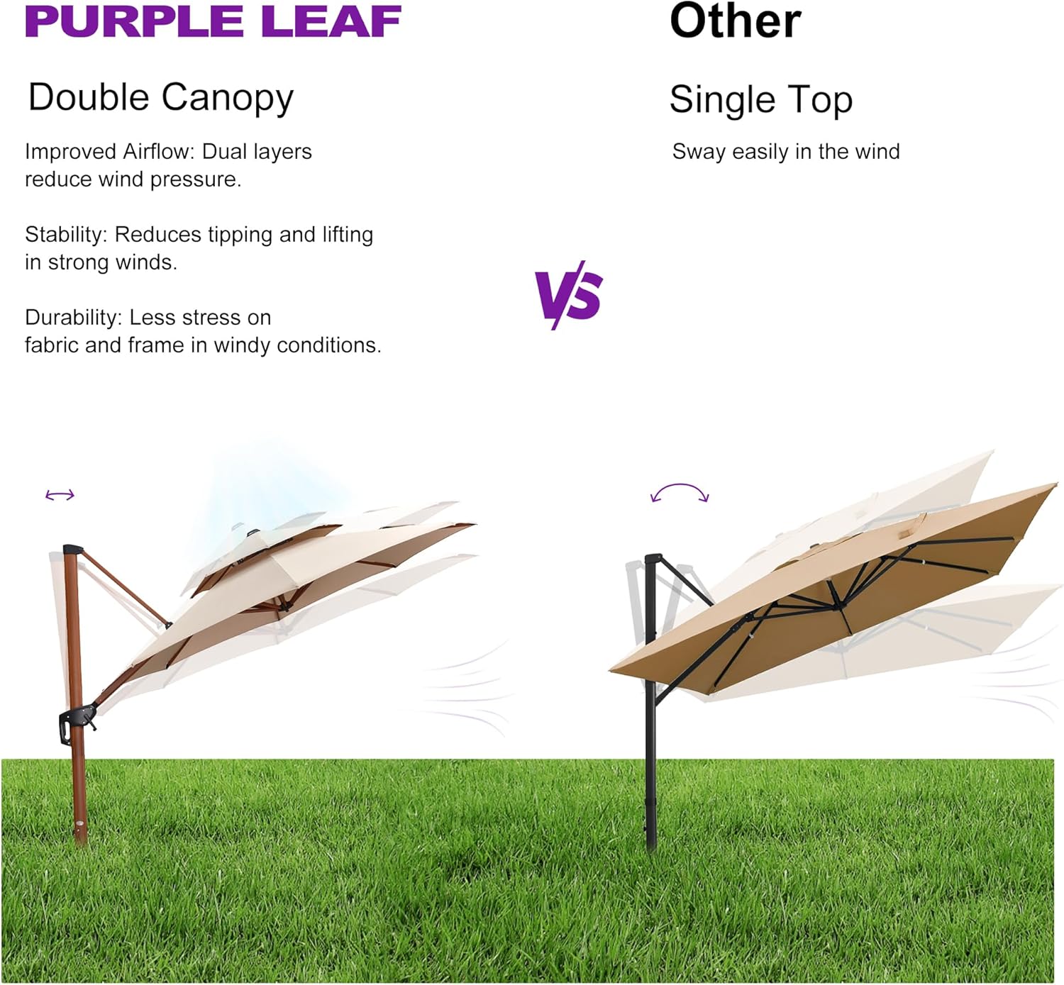 PURPLE LEAF 10ft Patio Umbrella Outdoor Round Umbrellas Large Cantilever Umbrella Windproof Offset Umbrellas Heavy Duty Sun Umbrella for Garden Deck Pool Patio, Beige