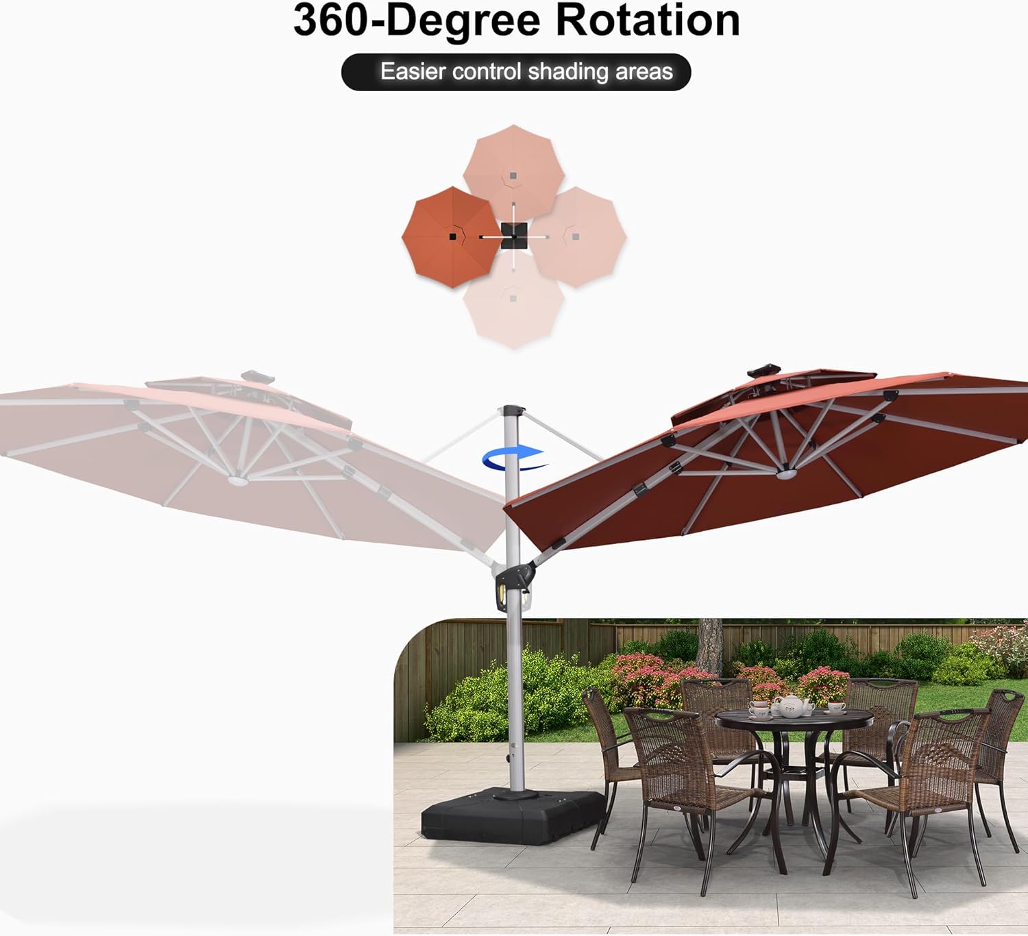 PURPLE LEAF 11ft Solar powered LED Patio Umbrella Outdoor Round Umbrellas Large Cantilever Umbrella with LED lights Windproof Offset Umbrellas Sun Umbrella for Garden Deck Pool Patio, Brick Red